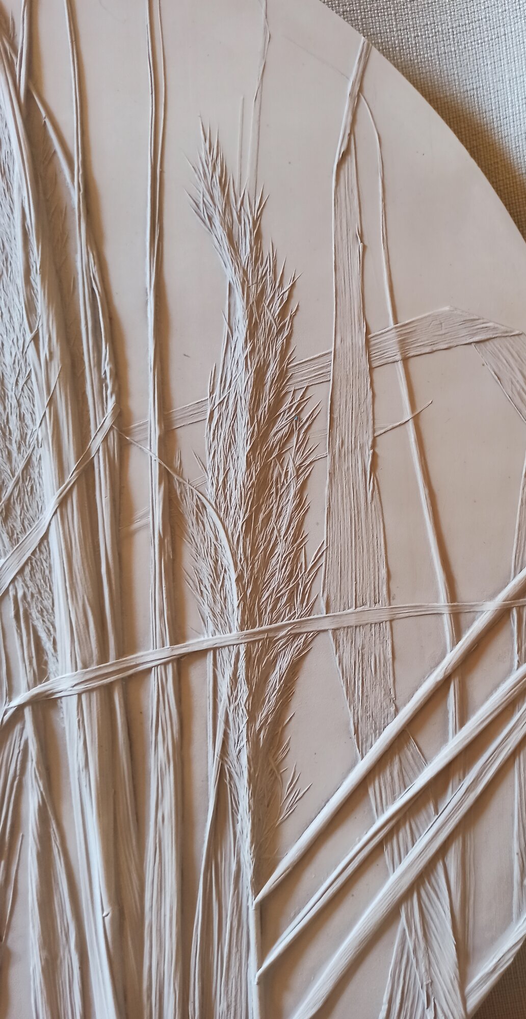 Ботанический барельеф - это изысканное и оригинальное решение для декора вашего интерьера. Изготовленное вручную, панно представляет собой оттиск живых растений, который повторяет все тонкости их рельефа. Размер 70 *50*2 см, цвет молочный, есть подвес для размещения на стене. Панно выполнено из высокопрочного гипса, что гарантирует его долговечность. Оригинальный дизайн и ручная работа делают барельеф прекрасным подарком для любого случая. Ботанический барельеф - это не просто украшение, но и способ выразить свою любовь к природе.