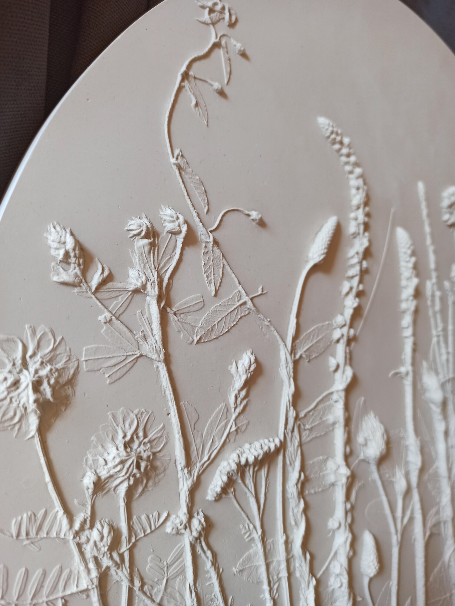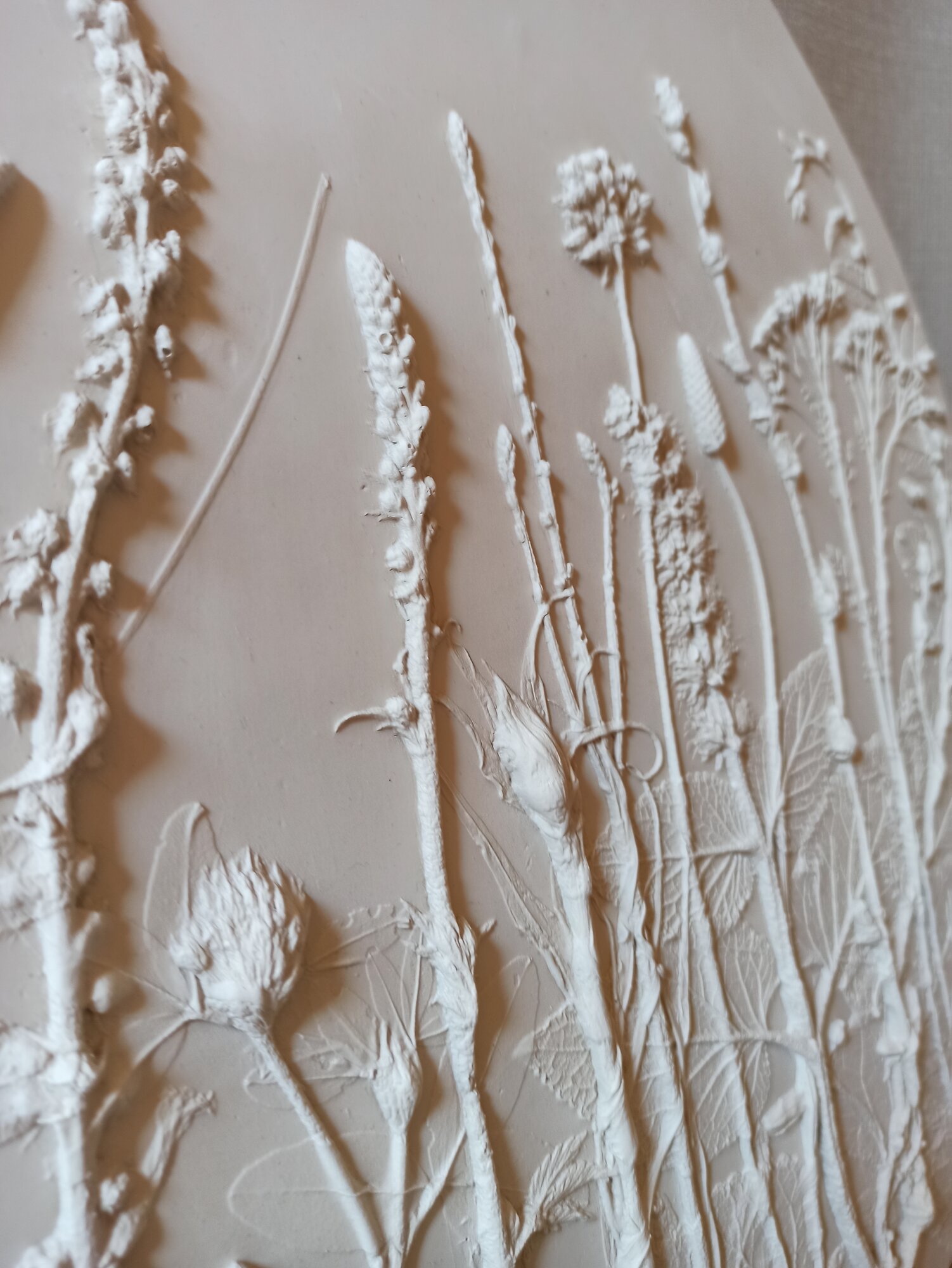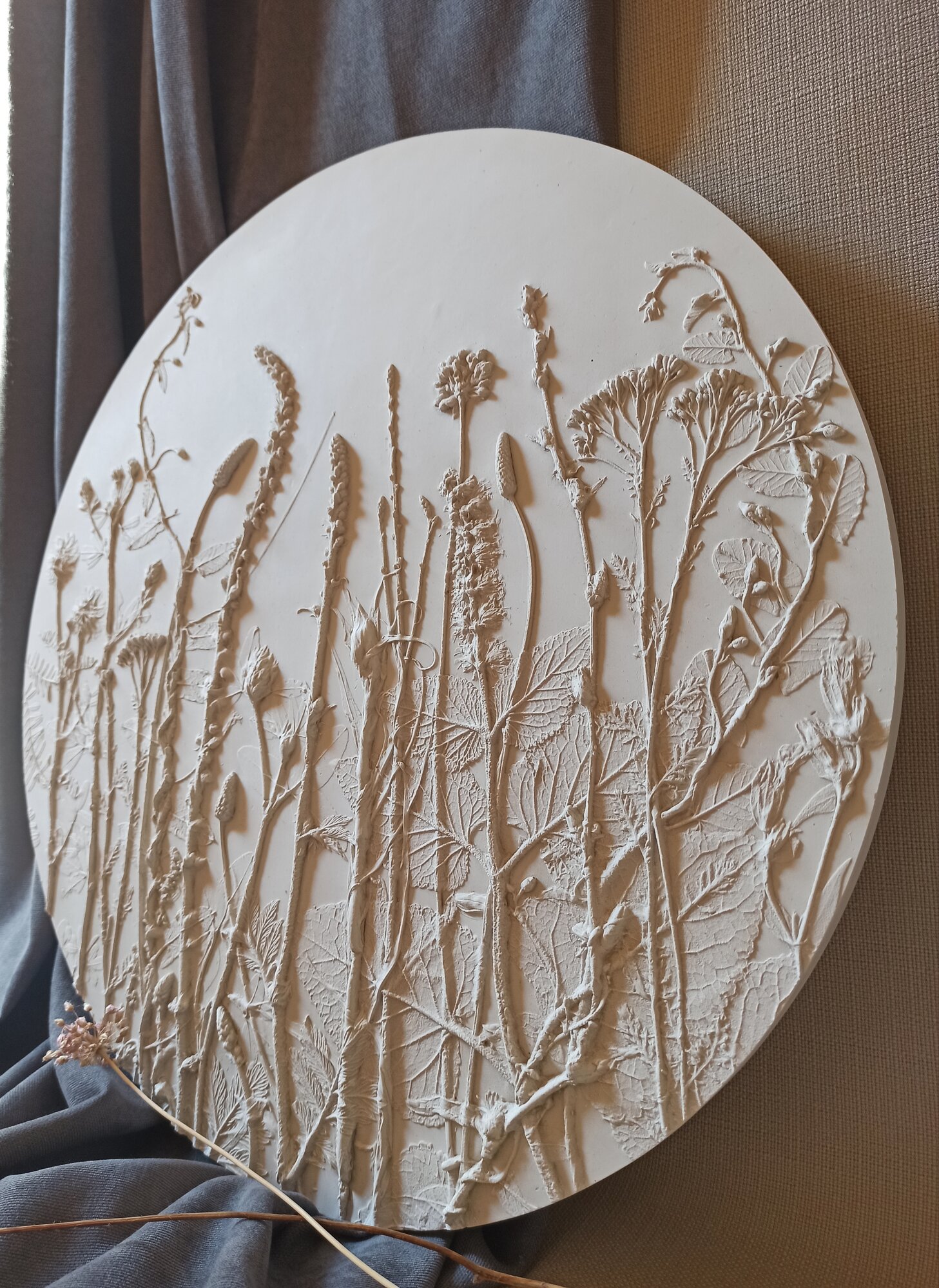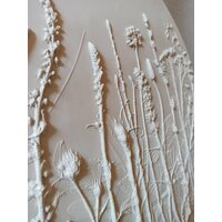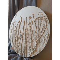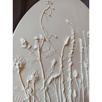 Ботанический барельеф - это изысканное решение для декора Вашего интерьера. Изготовленное вручную, панно представляет собой оттиск живых растений, который повторяет все тонкости их рельефа. Барельеф выполнен из высокопрочного гипса. Использованы луговые цветы. Диаметр 40 см, цвет белый, есть подвес для размещения на стене. Наиболее эффектно рельеф растений подчёркивает боковой свет. Мягкие оттенки и изящные линии делают это панно прекрасным подарком для любого случая и дарят эстетическое удовольствие своему обладателю. Ботанический барельеф - это не просто украшение, но и способ выразить свою любовь к природе.