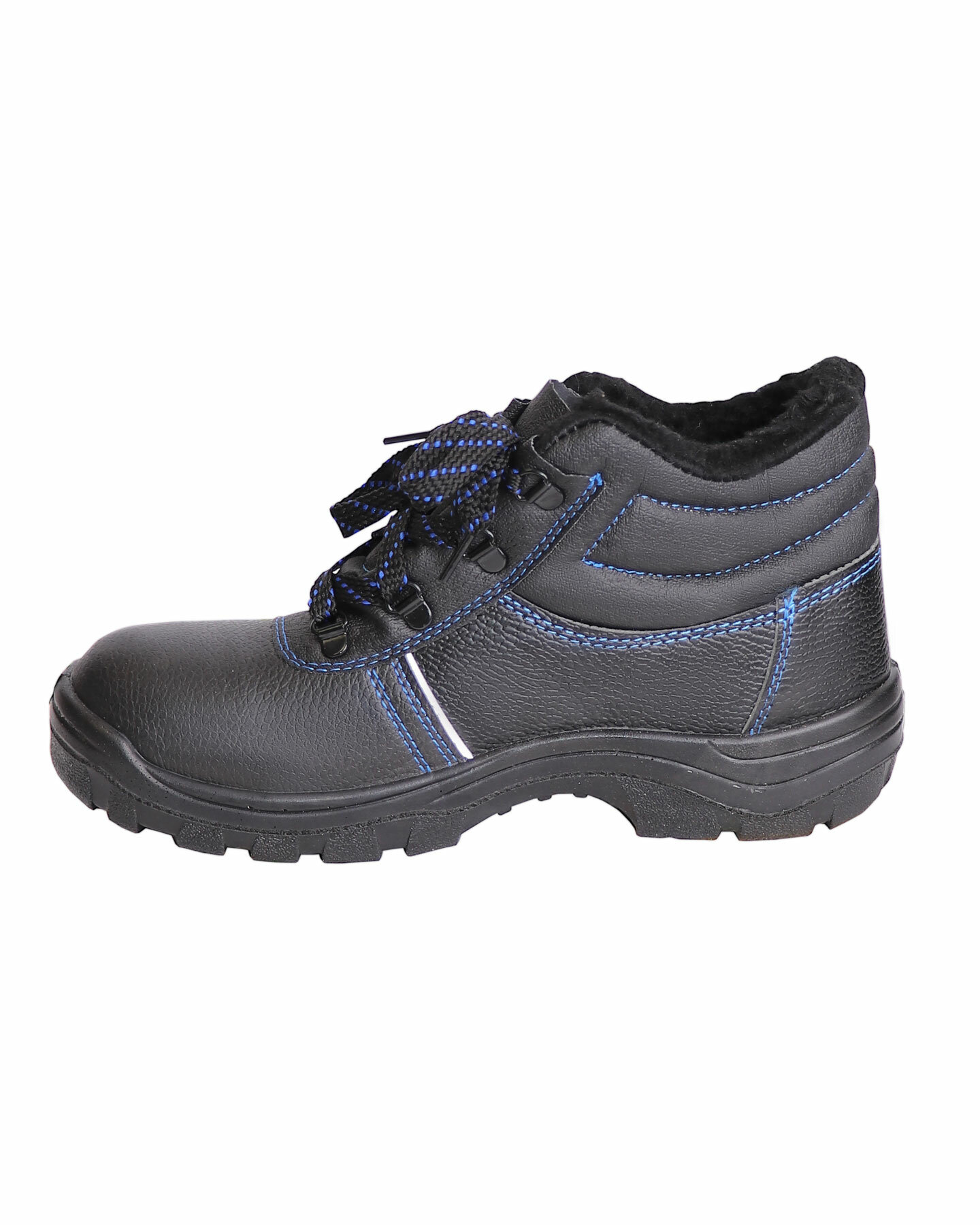 Ботинки из кожи c мягким кантом и глухим клапаном для защиты ног от общих производственных загрязнений в зимний период. Подкладка и вкладная стелька изготовлены из искусственного меха. Шнуровка, проходящая через металлические петли, обеспечивает комфортную адаптивную посадку. Светоотражающие элементы повышают видимость работников в темное время суток и на неосвещенной территории. Однослойная маслобензостойкая полиуретановая подошва литьевого метода крепления имеет вставку в пяточной части подошвы, обладающую амортизационными свойствами и способную гасить ударные нагрузки при ходьбе. Глубина протектора ходового слоя обеспечивает хорошую сцепляемость с поверхностями и препятствует скольжению за счет рельефа протектора. На этот товар имеется заключение Минпромторг.