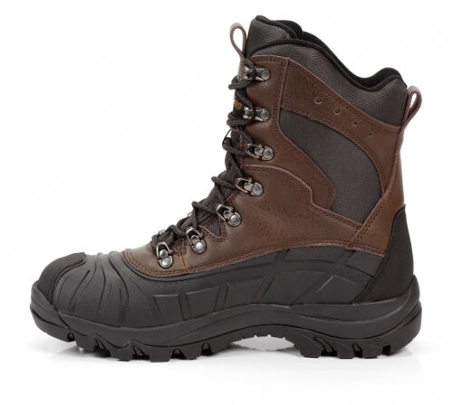 - Материал верха: кожа; - Утеплитель: [Thinsulate]; - Непромокаемые (резиновое усиление до середины ботинка); - Температурный режим: от -20°C до +7°C; - Присутствует антибактериальная пропитка.