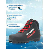 Детские лыжные ботинки Nordway предназначены для занятий классическим ходом и изготовлены из морозостойких материалов высокого качества. Анатомическая форма колодки гарантирует комфорт, сплошной язычок защищает от попадания снега и влаги, а теплая подкладка и классическая шнуровка обеспечивают идеальную посадку на ноге. Ботинки совместимы с креплениями NNN, Prolink и Turnamic и выносят температуру до -25 °C. Уникальная технология Froztex позволяет материалам выдерживать до 250 000 циклов сгибания, что гарантирует долгий срок службы ботинок.