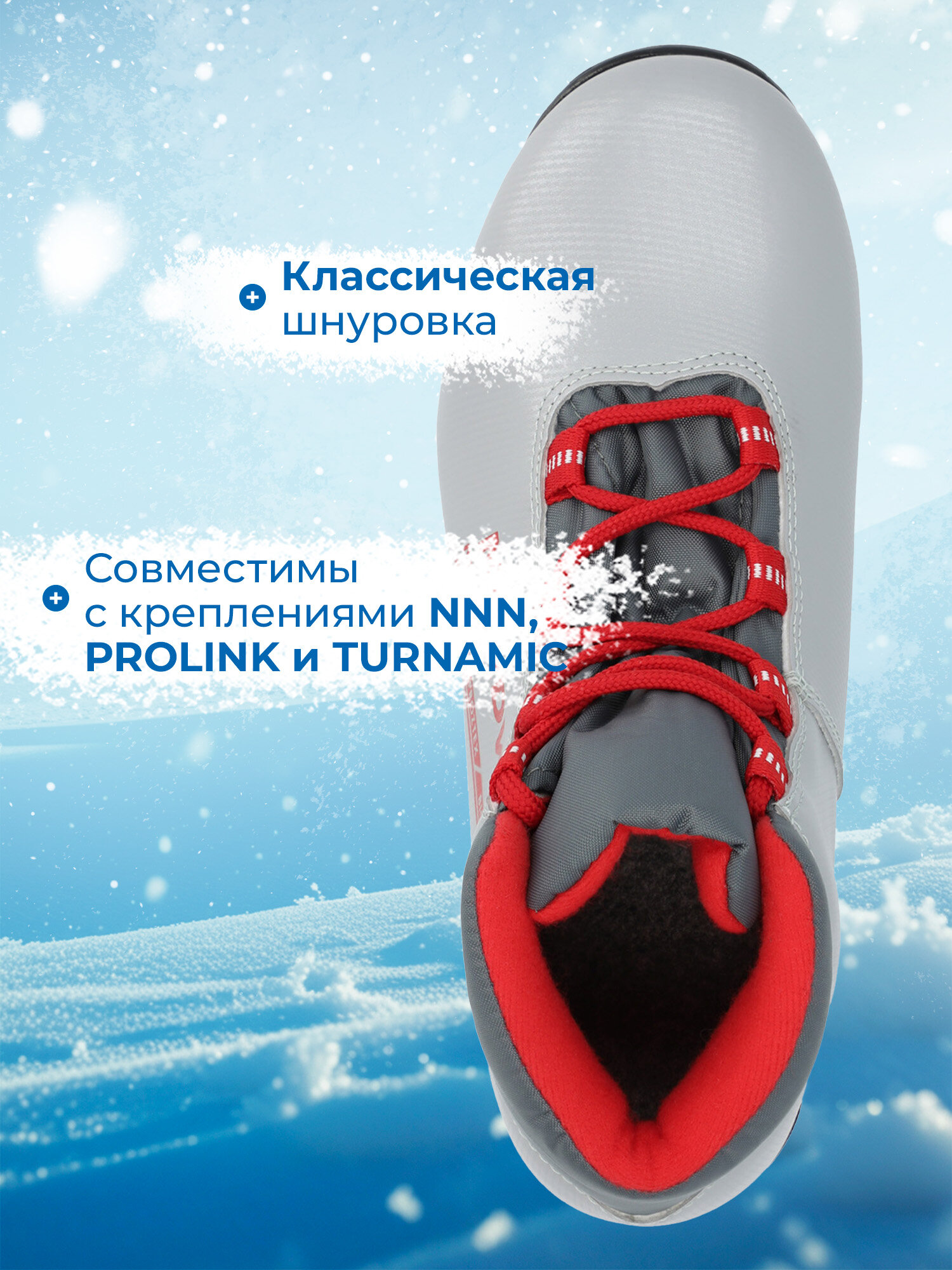 Детские лыжные ботинки Nordway предназначены для занятий классическим ходом и изготовлены из морозостойких материалов высокого качества. Анатомическая форма колодки гарантирует комфорт, сплошной язычок защищает от попадания снега и влаги, а теплая подкладка и классическая шнуровка обеспечивают идеальную посадку на ноге. Ботинки совместимы с креплениями NNN, PROLINK и TURNAMIC и выносят температуру до –25 °C. Уникальная технология Froztex позволяет материалам выдерживать до 250 000 циклов сгибания, что гарантирует долгий срок службы ботинок.