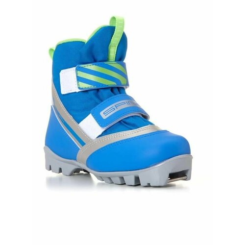 Нога фиксируется благодаря застежке на липучке, что будет удобно для маленьких детей - можно снимать и надевать обувь в перчатках.