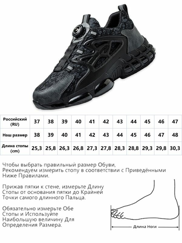 Уважаемые покупатели, при выборе размера обуви мы рекомендуем вам обратить внимание на логотип нашего размера на карточке товара. Кроме того, в карточке товара вы также можете найти характерные фотографии, чтобы погрузиться в мир моды и безопасности с помощью нашего инновационного ассортимента мужской рабочей обуви и ботинок для мужчин. Эти рабочие кроссовки отличаются не только элегантным дизайном, но и обеспечивают непревзойденный комфорт и защиту в любых условиях. Металлические накладки на носки обеспечивают отличную защиту от ударов и механических повреждений. Кевларовые стельки не только защищают ваши ноги, но и отлично впитывают влагу благодаря анатомическим стелькам из пены с эффектом памяти, снижая усталость даже после долгого рабочего дня. Высококачественная термостойкая и нескользящая подошва станет вашим надежным союзником на любой поверхности. Обеспечивая отличное сцепление, эта подошва обеспечивает стабильность и безопасность в любых ситуациях. Эта защитная обувь не только сочетает в себе стиль и инновационные технологии, но и является практичным выбором для тех, кто ценит комфорт, безопасность и отличный внешний вид в любых условиях. Обладая особыми функциями специальной обуви, эта серия очень подходит для межсезонного периода. Почувствуйте разницу с нашей коллекцией рабочей обуви - ваш идеальный партнер на пути к успеху. Не упустите возможность приобрести изысканную мужскую обувь для работы и повседневной носки. Безопасность и комфорт - наш главный приоритет! Мы предлагаем широкий выбор специальной обуви, сочетающей в себе надежность, функциональность и стильный дизайн. Красивые продукты