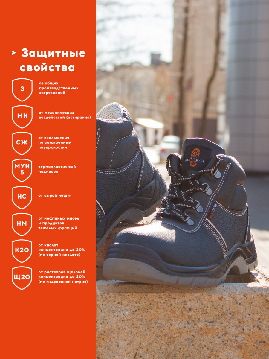 Где пригодится? Металлургия, стройка, ЖКХ, автосервисы, склады, химические производства – везде, где важны безопасность и комфорт. Подходит и для повседневной носки осенью. Мы предоставим вам декларацию соответствия на обувь для работы. Уважаемый Наш покупатель, мы рекомендуем вам обратить внимание на нашу размерную таблицу в карточках товара, при выборе размера обуви. Так же в карточках товара вы найдете фотографии с характеристиками и инструкции о том, как правильно измерить стопу и на что следует обратить внимание при выборе размера. Отнеситесь к этому с ответственностью, так как правильный выбор размера очень важен для здоровья Ваших ног!