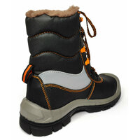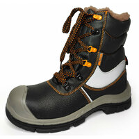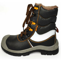 Надёжная и удобная защитная зимняя обувь для работы на стройках и производственных цехах. Ботинки изготавливаются из термоустойчивой водоотталкивающей кожи. Глухой клапан и надёжная шнуровка защищают от пыли. Антипрокольная стелька сделана из металла.