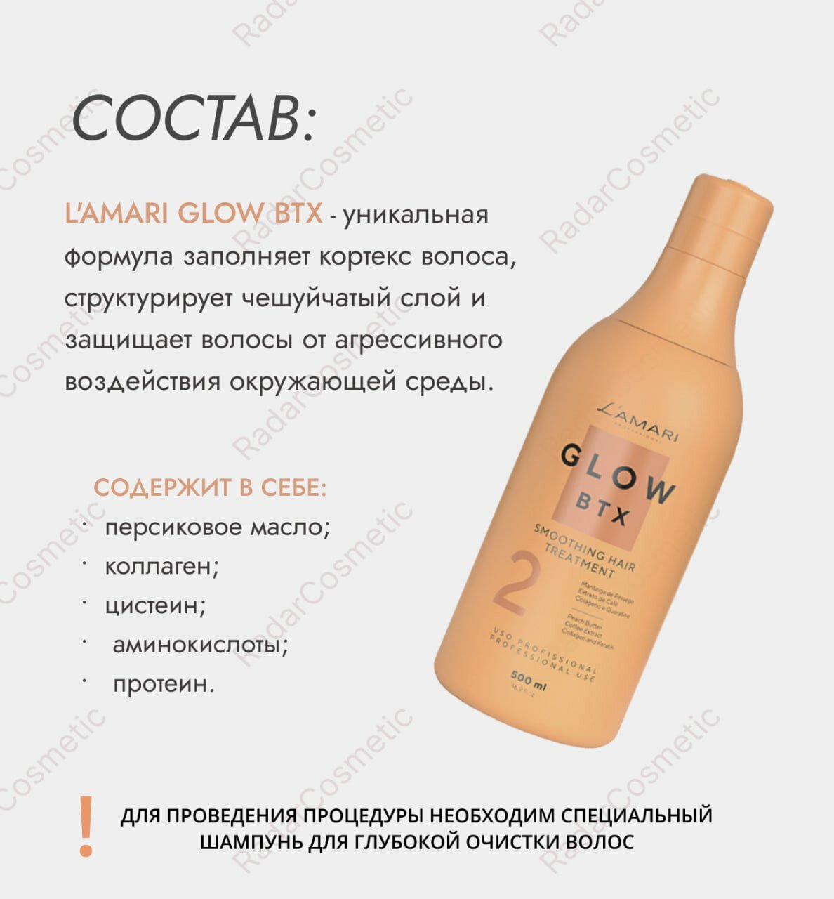 Купить Ботокс L’Amari «Glow BTX», 500мл, восстанавливающий, персиковый аромат с доставкой по всей России. Ботокс L’Amari «Glow BTX», 500мл, восстанавливающий, персиковый аромат: сравнение цен, характеристики, фото, актуальное наличие и цены.