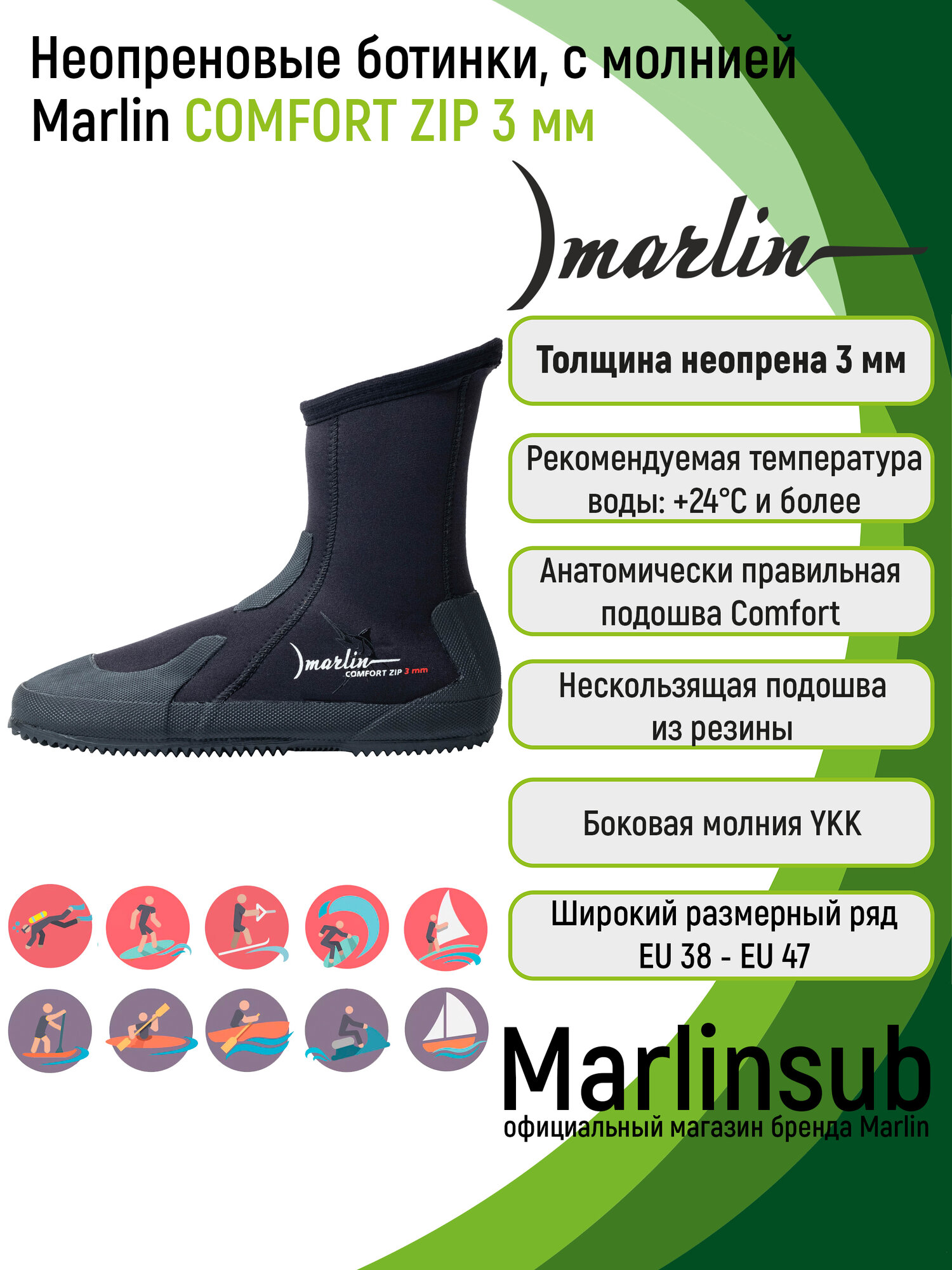 Боты для дайвинга и водных видов спорта Marlin COMFORT ZIP 3 мм 45, черный: сравнение цен, характеристики, фото, актуальное наличие и цены.