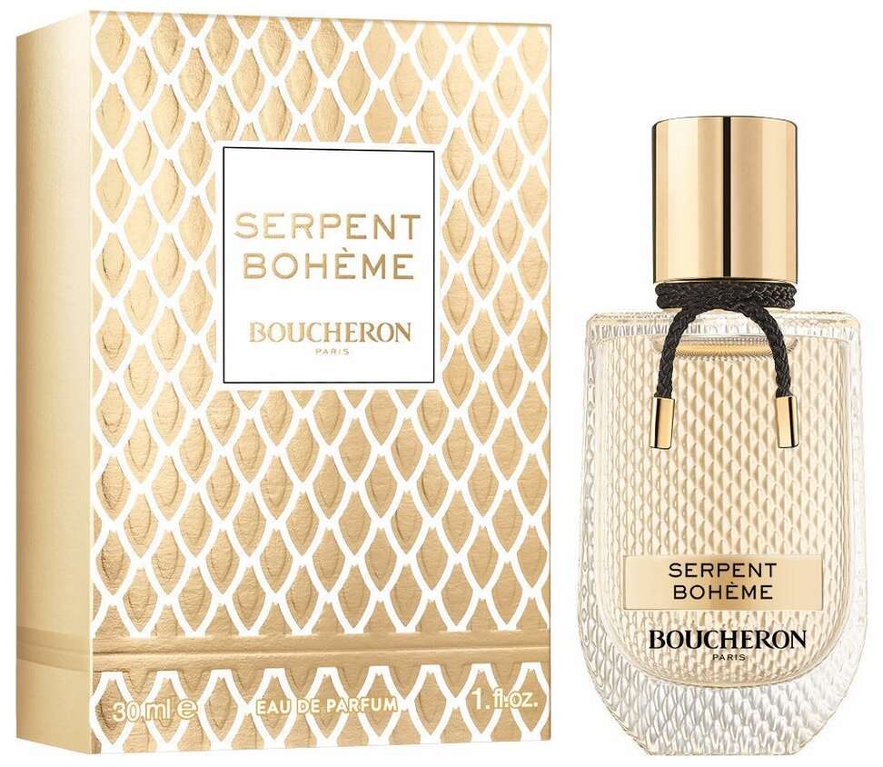 Элитный французский бренд Boucheron известен во всем мире не только благодаря своим роскошным ювелирным произведениям и изысканным часам, но и не менее прекрасным парфюмерным композициям. Эти чарующие ароматы прекрасно дополняют образ элегантной утонченной красавицы, подчеркивают ее высокий статус и эксклюзивный неординарный вкус. коллекция ювелирных украшений Serpent Boheme стала источником вдохновения для мастера, создавшего волнующий цветочный “шипр” Boucheron Serpent Boheme. Представленный в 2020 году, этот насыщенный женственный аромат несет в себе также мощную энергетику оберега, ведь именно именно змея уже долгие годы считается символом премиального бренда и источником его неповторимого успеха в мире. Подобно сияющему драгоценному золоту, переливается на коже очаровательный цветочный парфюм, созданный рукой талантливого мастера Anne Flipo. Ароматическая пирамидка отражает неземную красоту и харизматичность владелицы духов, ее бесконечную жажду жизни и стремление к самосовершенствованию. бодрящее цитрусовое начало стильного запаха Boucheron Serpent Boheme звенит волшебными переливами сладкого мандарина и бусинами терпкой черной смородины. Сердцем утонченного запаха стал неповторимый цветочный букет, сияющий страстью чувственных турецких роз и лепестками дикой пустынной розы, акцентирующей внимание на своенравности и бунтарском рнаве хозяйки духов. Сладострастный древесный шлейф мерцает теплом белого мускуса и смолистого лабданума, растворяясь в сливочном облаке сандаловых мотивов.