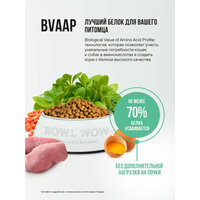 Полнорационный сухой корм BOWL WOW создан специально для стерилизованных кошек и котов. В нем 70% высококачественного животного белка - свежее мясо индейки без кости и куриное мясо (дегидрированное), гидролизованная печень и очищенный говяжий белок. Продукт создан по технологии BVAAP и не менее 70% белка в нем полноценно усваивается. Это полноценный аминокислотный профиль с высокой биологической ценностью и без избыточной нагрузки на почки.