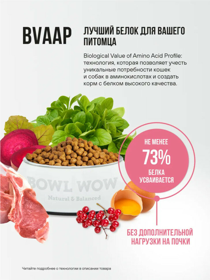 — Высококачественный животный белок в составе с высокой усвояемостью (технология BVaap). Полноценный аминокислотный профиль для вашего питомца без избыточной нагрузки на почки.