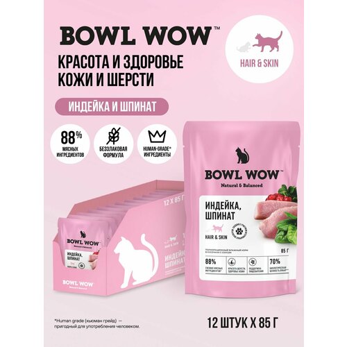 Купить BOWL WOW Корм влажный Hair & Skin для кошек, с индейкой и шпинатом для кожи и шерсти, 12 штук х 85 г с доставкой по всей России. BOWL WOW Корм влажный Hair & Skin для кошек, с индейкой и шпинатом для кожи и шерсти, 12 штук х 85 г: сравнение цен, характеристики, фото, актуальное наличие и цены.