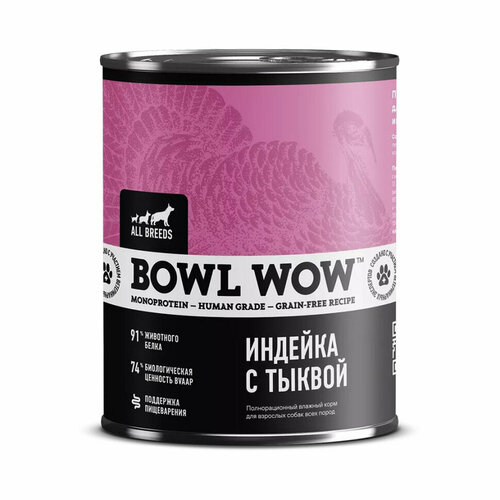 Купить BOWL WOW влажный корм для взрослых собак, с индейкой и тыквой — 850 г x 6 шт с доставкой по всей России.