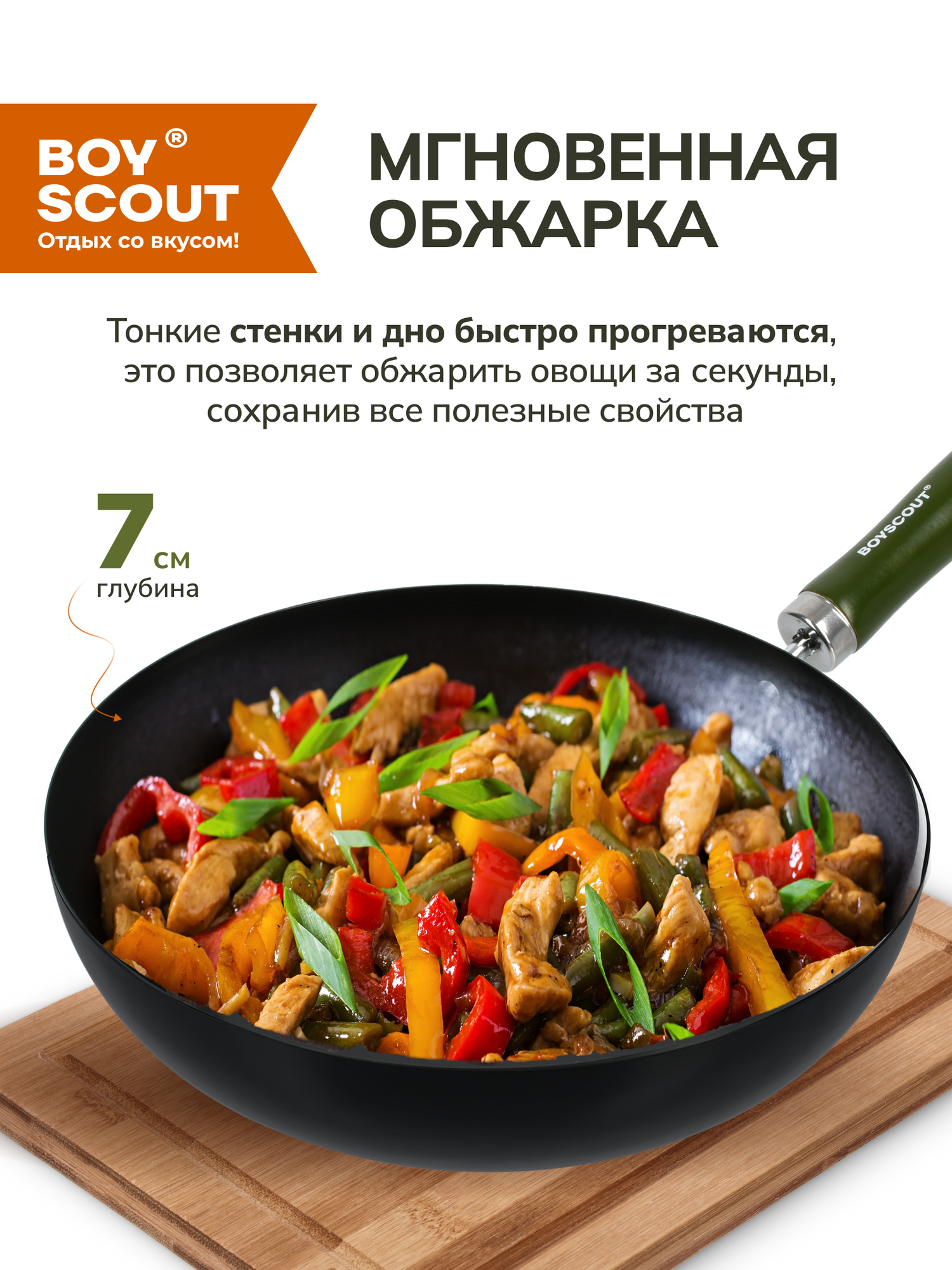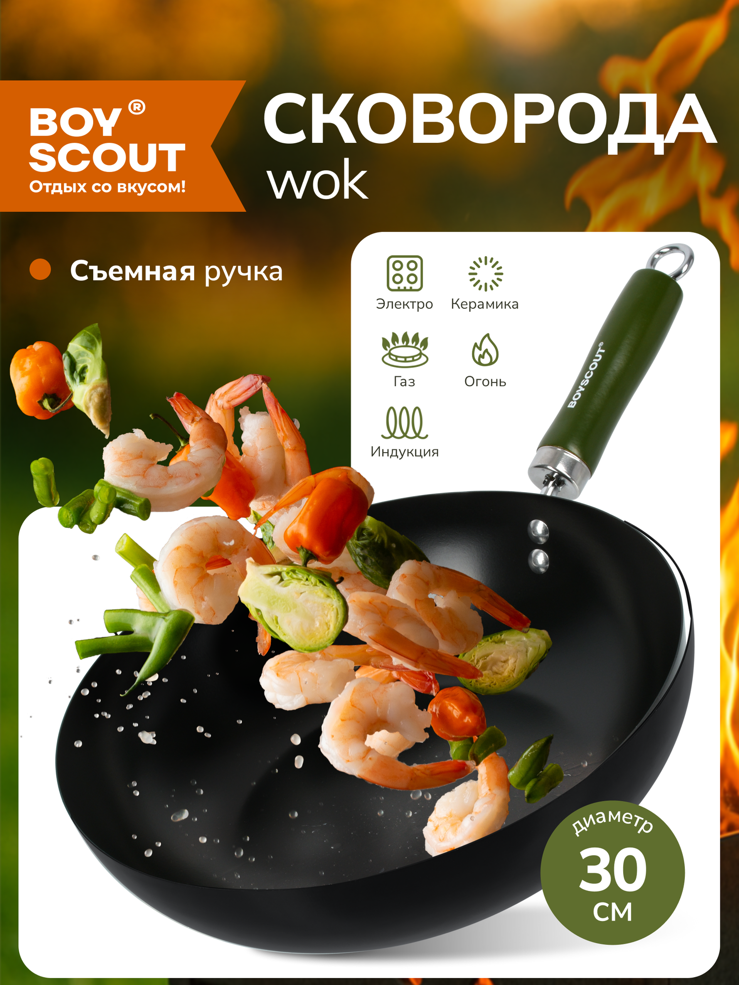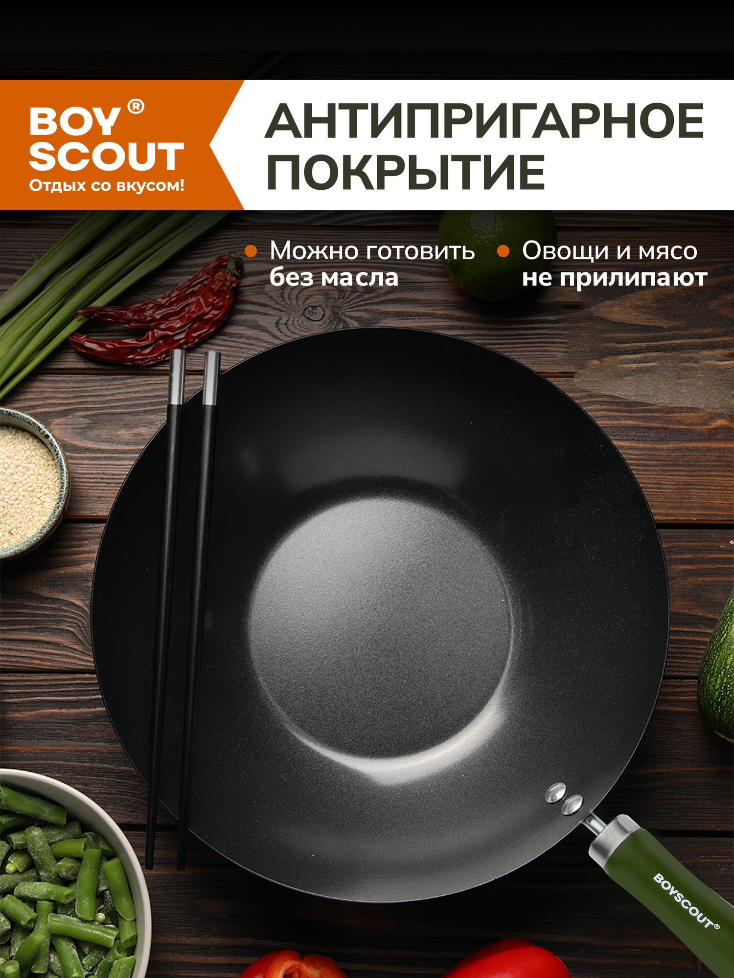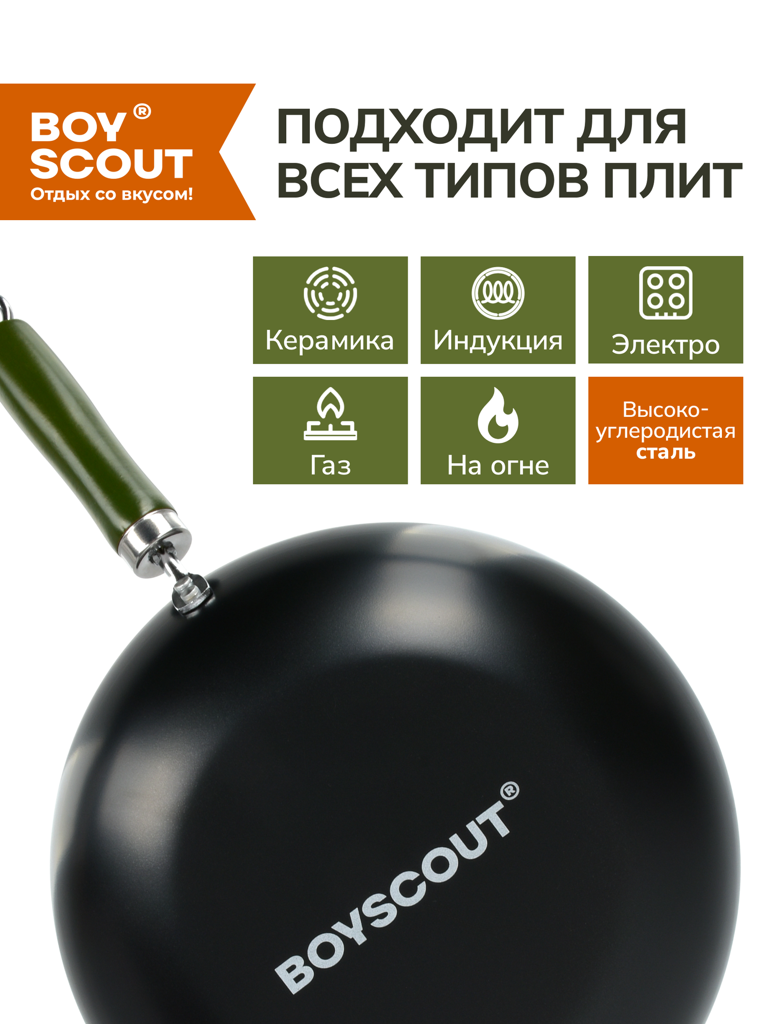 Купить BOYSCOUT Сковорода ВОК , стальная , с антипригарным покрытием d-30 см с доставкой по всей России. BOYSCOUT Сковорода ВОК , стальная , с антипригарным покрытием d-30 см: сравнение цен, характеристики, фото, актуальное наличие и цены.