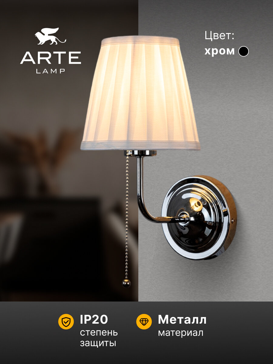 Купить Бра настенный Arte Lamp MARRIOT A5039AP-1CC, E27, 60 Вт, хром с доставкой по всей России. Бра настенный Arte Lamp MARRIOT A5039AP-1CC, E27, 60 Вт, хром: сравнение цен, характеристики, фото, актуальное наличие и цены.