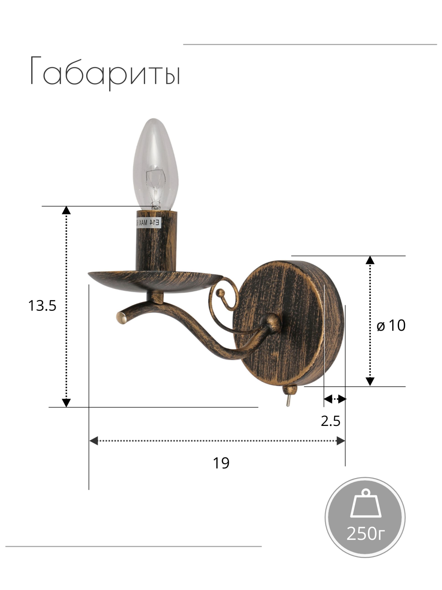 Бра настенное W054/1 BR, черный с золотой патиной, с тумблером: сравнение цен, характеристики, фото, актуальное наличие и цены.