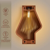 | Подробная комплектация | Деревянный светильник; патрон G9; крепеж; клеммы; упаковка; гарантийная карточка |
