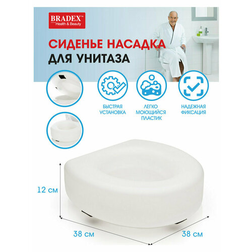 Сиденье для унитаза BRADEX предназначено для комфортной посадки, опоры и подъема людей с ограниченными физическими возможностями в период реабилитации, беременности, после операций или в силу возраста. Туалетная насадка удобное и надежное устройство для увеличения высоты посадочного места и равномерного распределения нагрузки на руки и ноги: с ней гораздо проще садиться и вставать. Эргономичная сидушка произведена из высококачественного, износостойкого, легко моющегося пластика, выдерживает вес до 135 кг. Универсальное пластиковое изделие подходит для большинства туалетов. Быстро и легко устанавливается, с внутренней стороны ободка при помощи выступающего края насадки. Специальных инструментов или навыков для установки изделия не требуется. Унитазная вставка рекомендуется для беременных и пожилых людей с проблемами мобильности, для инвалидов с заболеваниями опорно-двигательного аппарата, тяжело больных пациентов, детей и взрослых. Накладка на унитаз подходит для использования дома, в домашних условиях, в лечебных организациях и медицинских учреждениях: городских больницах, госпиталях, коммерческих клиниках, реабилитационных центрах. Сиденье-насадка может подвергаться санитарной обработке сильных чистящих средств без потери внешнего вида и качества инвентаря. Размер изделия 38x38x12 см. Сидение – полезный подарок родителям, маме, папе, бабушке, дедушке. Добавьте бренд Брадекс в избранное. У нас часто проходят акции и распродажи, где вы можете купить наши товары для здоровья со скидкой.