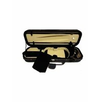 размер 4/4 прямоугольный, серия - люкс, супер облегчённый, гигрометр, место для моста и 2-х смычков, наружний карман для нот, две лямки, цвет чёрный с коричневым производство Китай