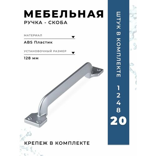 Ручка-скоба имеет изогнутую форму. Основной материал этой простой, но надежной фурнитуры — пластик. К мебели ручка-скоба крепится с помощью саморезов через предварительно просверленные отверстия. Обратите внимание: крепление в комплекте.
