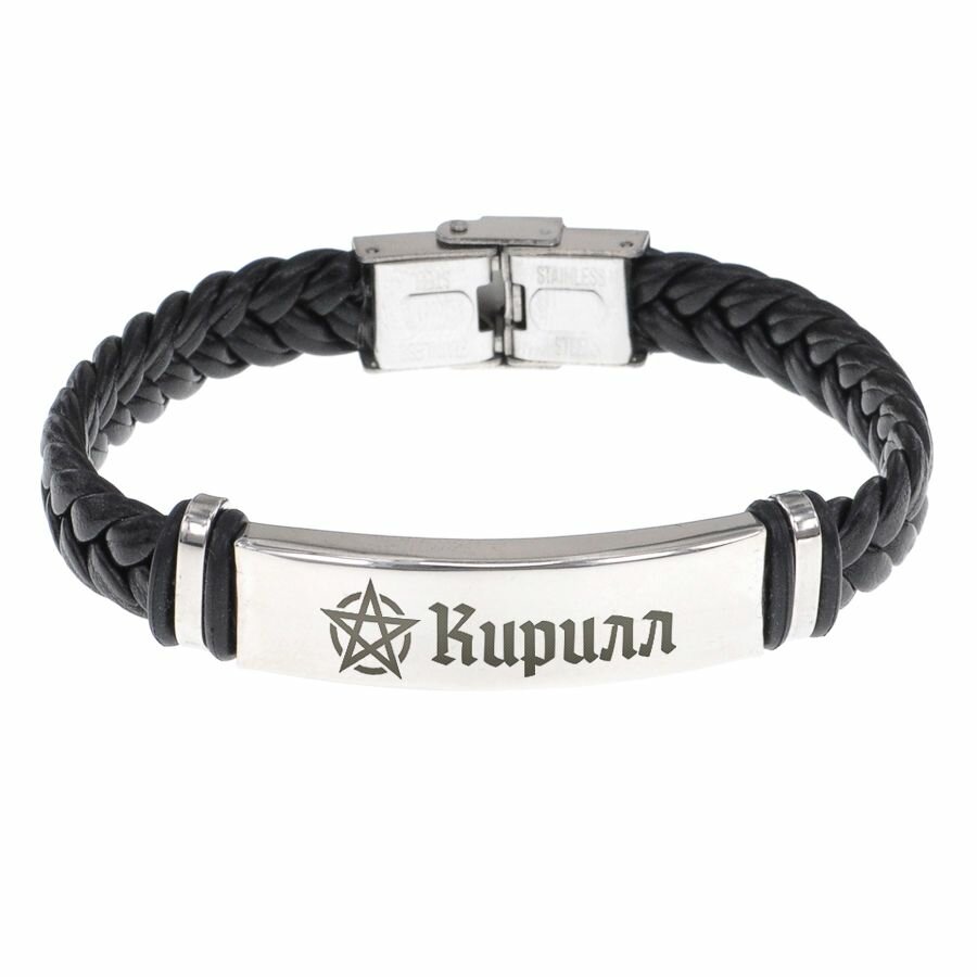 Купить Браслет кожаный мужской именной Кирилл, подарок на 23 февраля, талисман на удачу, оберег от сглаза и порчи, защитный амулет с доставкой по всей России.
