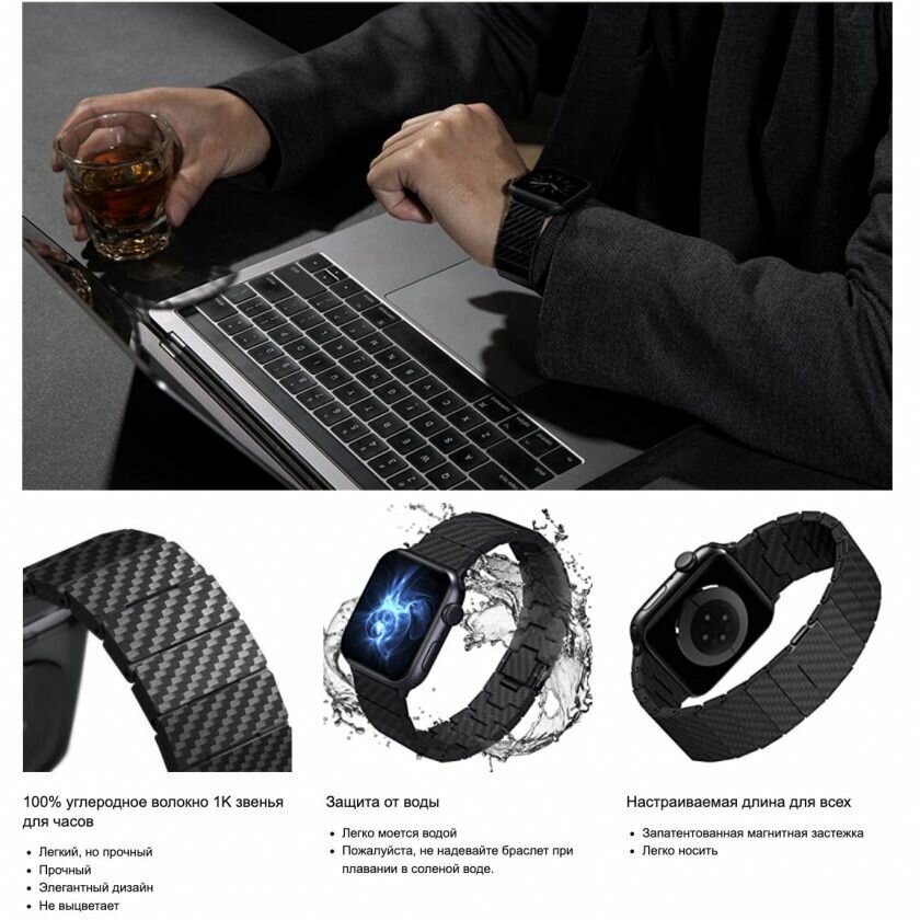 Браслет PITAKA Carbon Fiber Link серия Retro для Apple Watch 42/44/45/49mm, чёрно/серый: сравнение цен, характеристики, фото, актуальное наличие и цены.