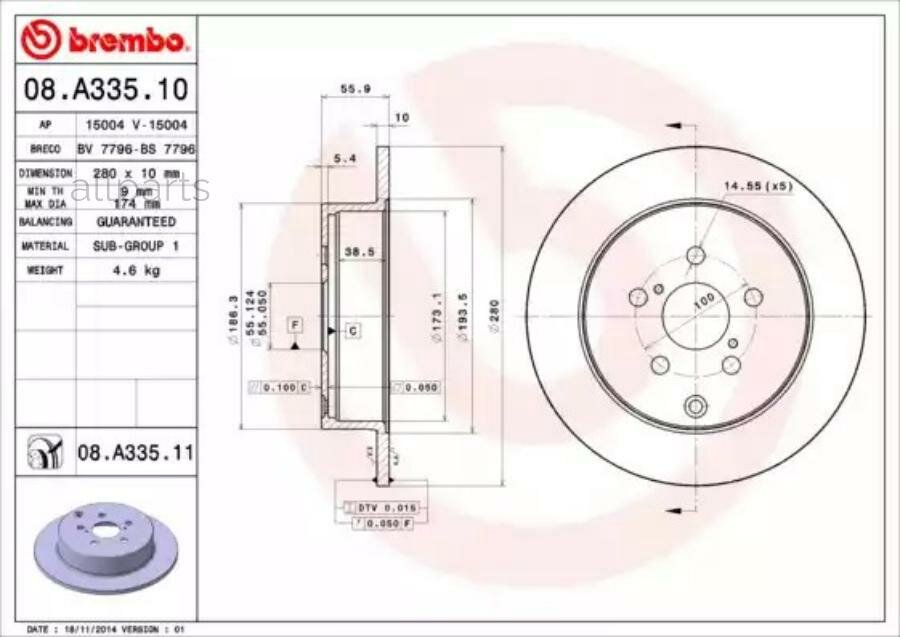 BREMBO 08A33511 Диск тормозной UV Coated | зад |: сравнение цен, характеристики, фото, актуальное наличие и цены.