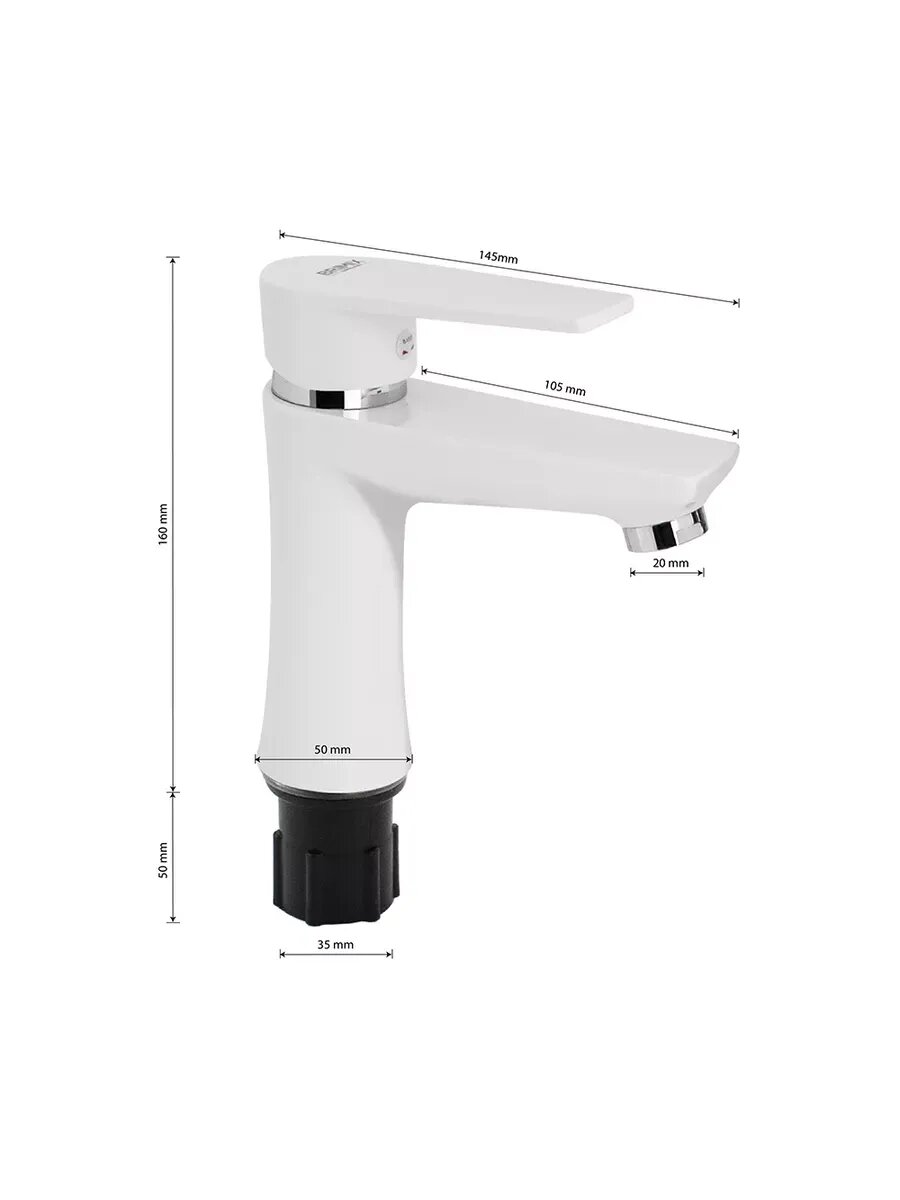BRIMIX 597 Смеситель на раковину, шаровый из высокопрочного пластика АБС — белый