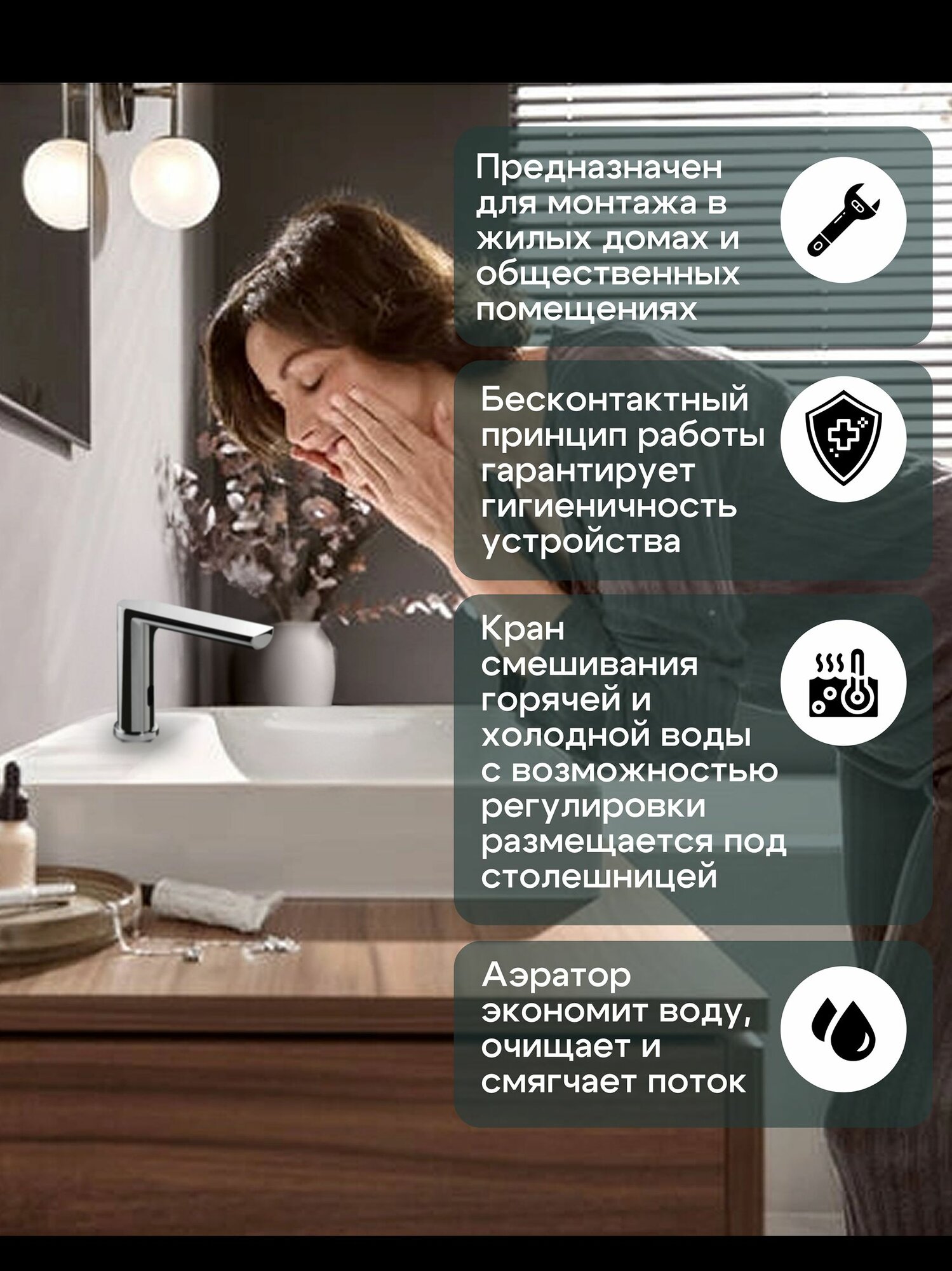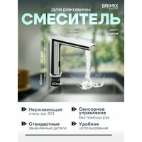 Brimix Смеситель сенсорный на раковину с регулировкой температуры воды под столешницей / нержавеющая сталь, цвет Хром: сравнение цен, характеристики, фото, актуальное наличие и цены.