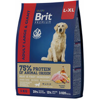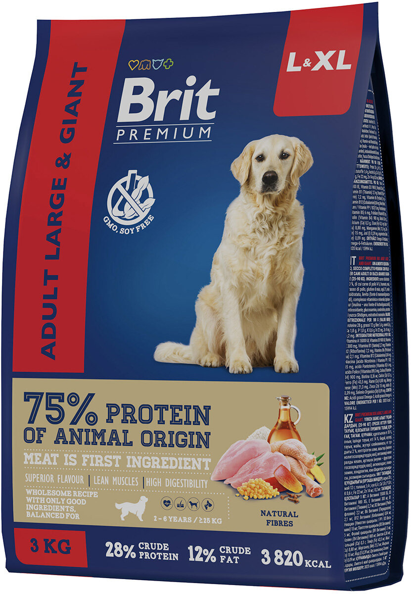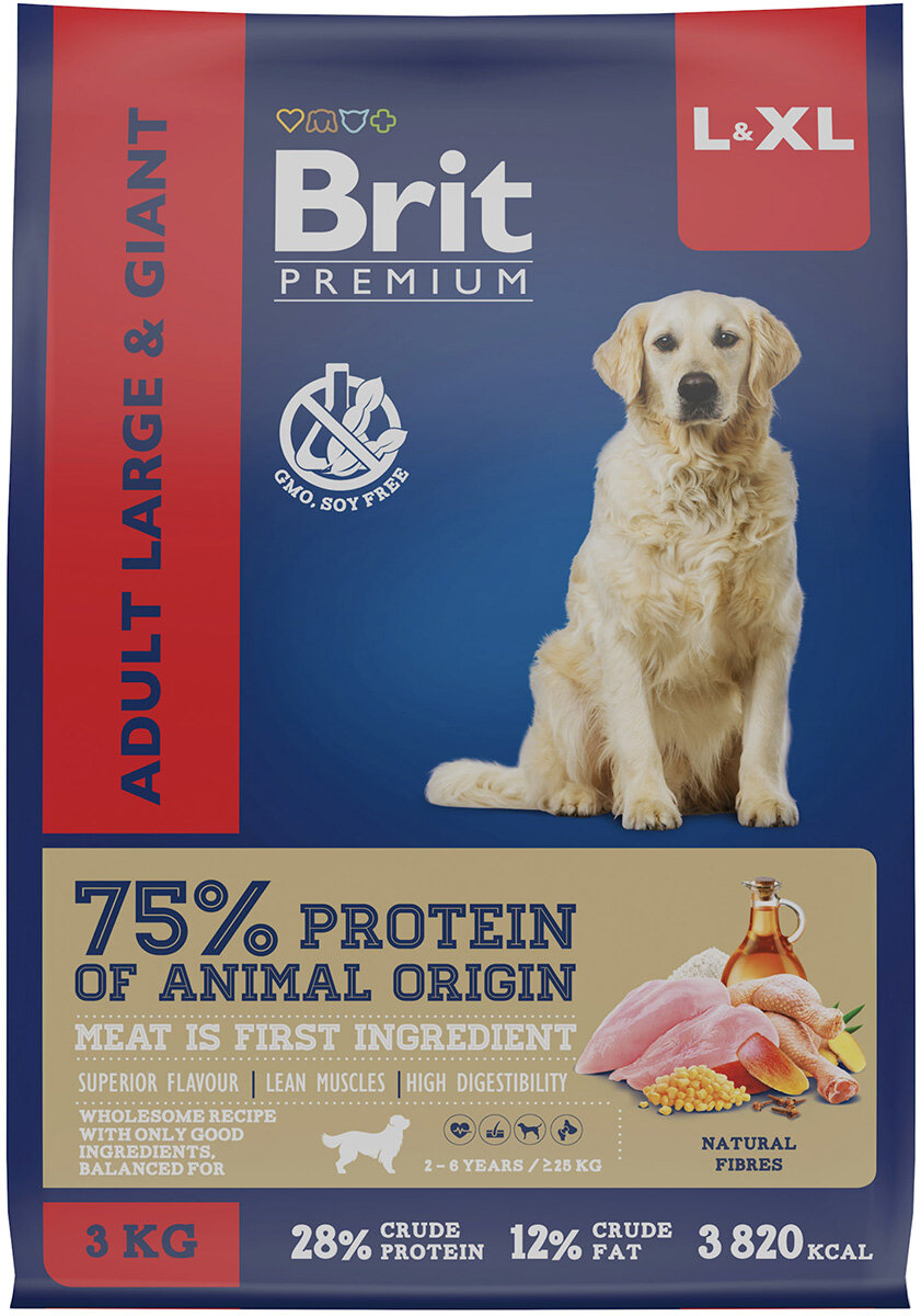 BRIT PREMIUM DOG ADULT LARGE & GIANT для взрослых собак крупных и гигантских пород с курицей (3 кг): сравнение цен, характеристики, фото, актуальное наличие и цены.