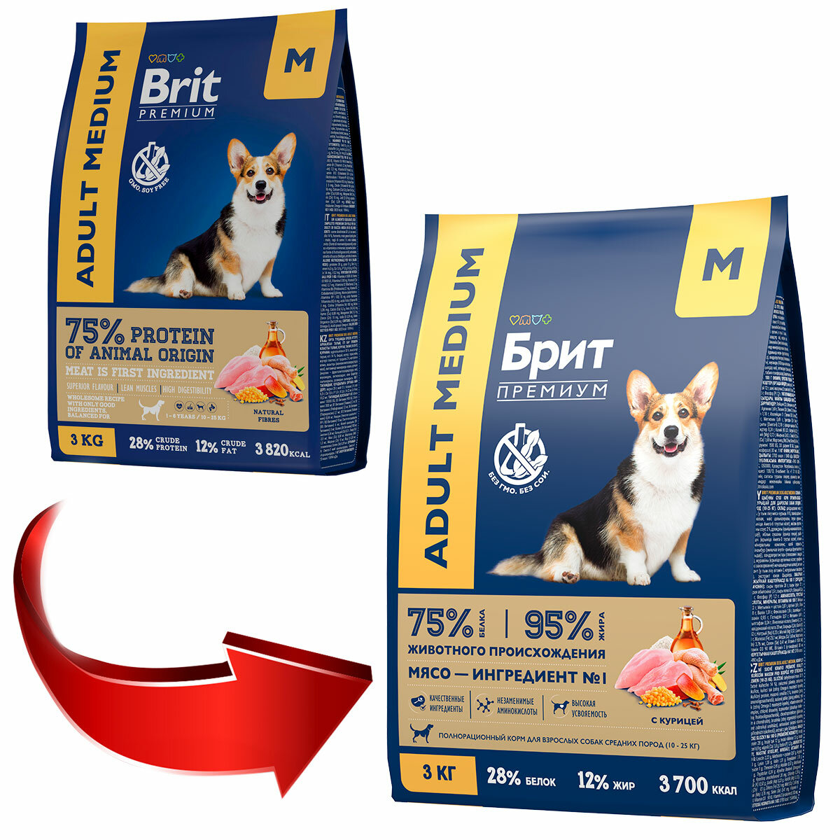 Купить БРИТ ПРЕМИУМ DOG ADULT MEDIUM для взрослых собак средних пород с курицей (3 кг) с доставкой по всей России. БРИТ ПРЕМИУМ DOG ADULT MEDIUM для взрослых собак средних пород с курицей (3 кг): сравнение цен, характеристики, фото, актуальное наличие и цены.