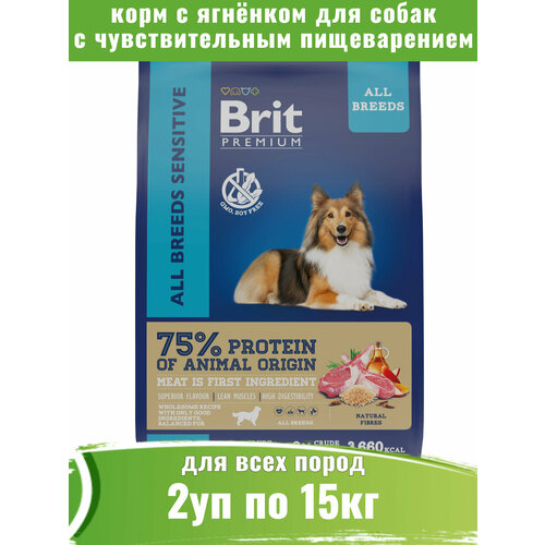 Две пачки кормаПолнорационный сухой корм Brit Premium Sensitive с бараниной и индейкой для взрослых собак всех пород с чувствительным пищеварением.