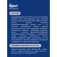 Полнорационный сухой корм Brit Premium Sensitive с бараниной и индейкой для взрослых собак всех пород с чувствительным пищеварением Brit Premium – корм премиум класса с высоким содержанием мяса 30%, в том числе мясо ягненка, индейки. Состав идеально сбалансирован и отвечает всем потребностям в зависимости от возраста и породы. Содержание незаменимых аминокислот способствуют здоровому гармоничному развитию. Баланс витаминов и минералов для крепкого иммунитета, а также пребиотики для здорового пищеварения. Использование злаков с различным гликемическим индексом – создает чувство насыщения, снижает гликемический индекс злаковой составляющей. Соблазнительный аромат и прекрасный вкус обеспечивается за счет свежих натуральных ингредиентов. Не содержит искусственных добавок, красителей, ароматизаторов. Состав: Дегидрированное мясо 30% (в том числе ягненок, индейка), кукуруза, рис, глютен кукурузный, жир куриный, соус из гидролизованного мяса ягненка 2 %, пульпа свекольная, сушеное яблоко, дрожжи (источник маннанолигосахаридов), витаминно-минеральный комплекс, топинамбур (инулин - источник фруктоолигосахаридов), клюква, антиокслитель, экстракт юкки Шидигера, экстракт розмарина. Пищевая ценность на 100 г (средние значения): белок 28 г, жир 9 г, клетчатка 1,3 г, зола 6,5 г, Са 1,4 г, P 1,0 г К 0,6 г, FE 22 мг, ZN 14 мг, I 0,2 мг. Питательные добавки на 1 кг: Витамин А 15000 МЕ, Витамин Д3 900 МЕ, Витамин Е 300 мг, витамин B1 (тиамин) 2,7 мг, витамин B2 (рибофлавин) 7,2 мг, витамин B6 (пиридоксин) 2,1 мг, витамин B12 (кобаламин) 0,04 мг, ниацин (никотиновая к-та /витамин РР / В3) 15 мг, пантотеновая к-та (витамин В5) 6 мг, фолиевая к-та (витамин В9) 3 мг, холин (витамин В4) 900 мг, биотин 0,36 мг, кальций (Са) 0,3 г, железо (Fe) 43,5 мг, медь (Cu) 8,88 мг, марганец (Mn) 21,3 мг, цинк (Zn) 15 мг, йод (I) 0,39 мг, селен органический (Se) 0,09 мг. Содержит: Омега-3 жирные кислоты, Омега-6 жирные кислоты. Энергетическая ценность на 1 кг: 3660 ккал / 15324 кДж. рекомендации ПО кормлению: Корм следует давать сухим или увлажненным теплой водой. У животного всегда должен быть доступ к миске со свежей водой. важно: При вводе нового корма смешайте его небольшое количество с привычной едой и в течение нескольких дней постепенно увеличивайте количество нового корма. Следуйте рекомендациям по ежедневному питанию, представленным в таблице. Количество корма может меняться в зависимости от таких факторов, как возраст и уровень активности.