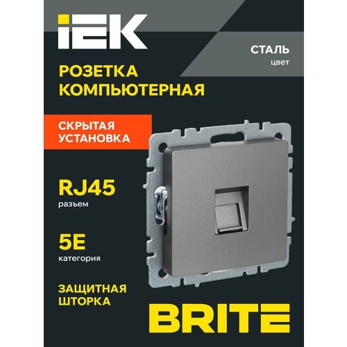 Купить BRITE Розетка компьютерная RJ45 кат.5E РК10-БрС сталь IEK с доставкой по всей России. BRITE Розетка компьютерная RJ45 кат.5E РК10-БрС сталь IEK: сравнение цен, характеристики, фото, актуальное наличие и цены.