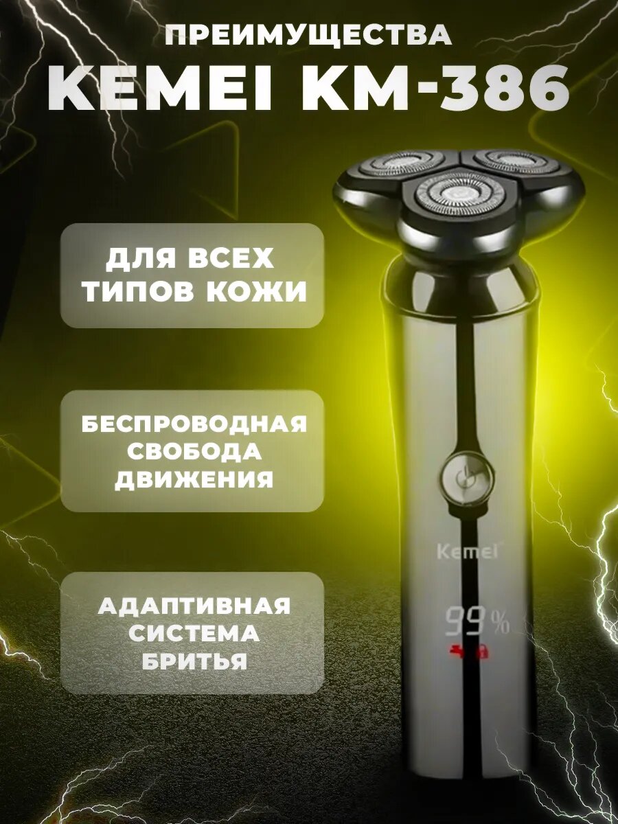 Купить Бритва электрическая Kemei KM-386 для каждодневного бритья с доставкой по всей России. Бритва электрическая Kemei KM-386 для каждодневного бритья: сравнение цен, характеристики, фото, актуальное наличие и цены.