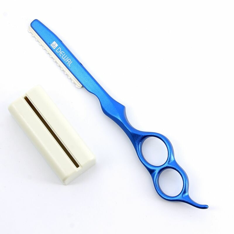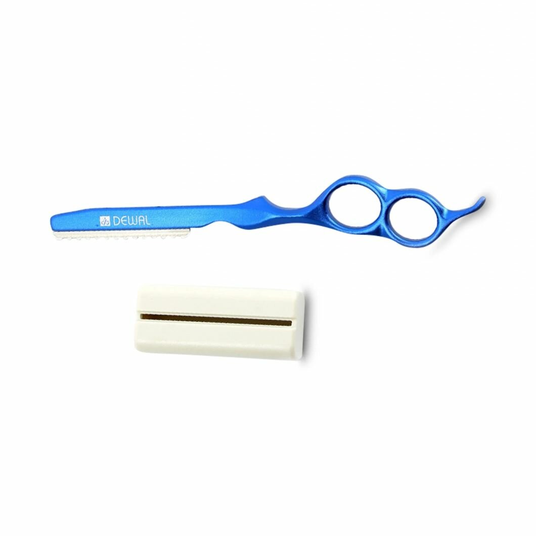 Купить Бритва филировочная DEWAL Pro, со съемным лезвием и станком для снятия лезвия в комплекте, синяя с доставкой по всей России.