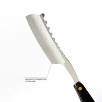 Внимание! Бритва имеет классическую заводскую заточку. Если Вас не устроила степень заточки бритву необходимо поправить с помощью ремня или заточить более остро, в зависимости от ваших требований (толщины волоса). Если вы никогда не точили опасные бритвы, предпочтительней отдать инструмент на заточку профессионалу. Опасная бритва многоразовая Silver slide. Лезвие бритвы изготовлено из стали 440С, которая обладает высокими эксплуатационными свойствами, имеет высокую устойчивость к коррозии и износу. Твердость по шкале Роквелла составляет 59HRC и это отличный показатель прочности и устойчивости к механическому воздействию. Лезвие долго держит заточку. Ручка бритвы выполнена из палисандрового дерева. Древесина обладает очень высокой твердостью и прочностью.
