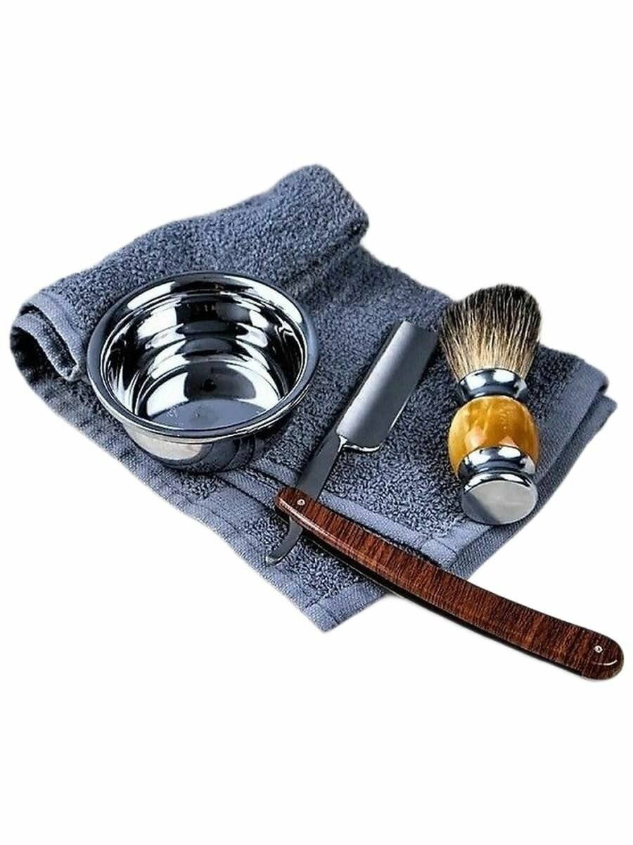 Набор для бритья 4 в 1 с подставкой, бритвой, помазком и чашей представляет собой комплект, который обеспечивает полный набор инструментов для комфортного и эффективного бритья. Чаша изготовлена из высококачественной хромированной стали, что придает ей прочность и долговечность. Ее габариты составляют 80х80х40 мм, а объем - 150 мл. Благодаря таким размерам, в чаше можно легко разместить достаточное количество пены или геля для бритья, обеспечивая комфортное покрытие лица перед процедурой. Подставка выполнена из того же качественного материала - хромированной стали. Она обладает антискользящим покрытием, что гарантирует надежную фиксацию всех компонентов набора. Подставка имеет специальные крепления для чаши (диаметр 8 см), помазка (диаметр 3 см) и бритвы (диаметр 1,2 см), что позволяет удобно и компактно хранить все необходимые предметы. Высота подставки составляет 15,5 см, что обеспечивает удобство использования и хранения набора. Помазок в наборе имеет ручку из эпоксидной смолы, которая обеспечивает прочность и удобство в использовании. Ворс барсука, используемый в помазке, является натуральным и мягким, что позволяет наносить пену или гель на кожу максимально комфортно и бережно. Опасная бритва в наборе имеет рукоять из полимерного материала, что обеспечивает прочность и удобство в использовании. Лезвие бритвы выполнено из цельного литого материала Gold Monkey, что гарантирует его остроту и долговечность. Ручка бритвы имеет длину 14 см, а клинок - 11 см. Длина лезвия составляет 7,5 см, что обеспечивает точное и эффективное бритье. Набор для бритья 4 в 1 - это идеальный выбор для мужчин, которые ценят высокое качество, стиль и комфорт во время бритья. Он обеспечивает все необходимые инструменты для достижения идеального результата и ухаживает за кожей лица. Благодаря своему высокому качеству и элегантному дизайну, он станет прекрасным подарком для истинного джентльмена.