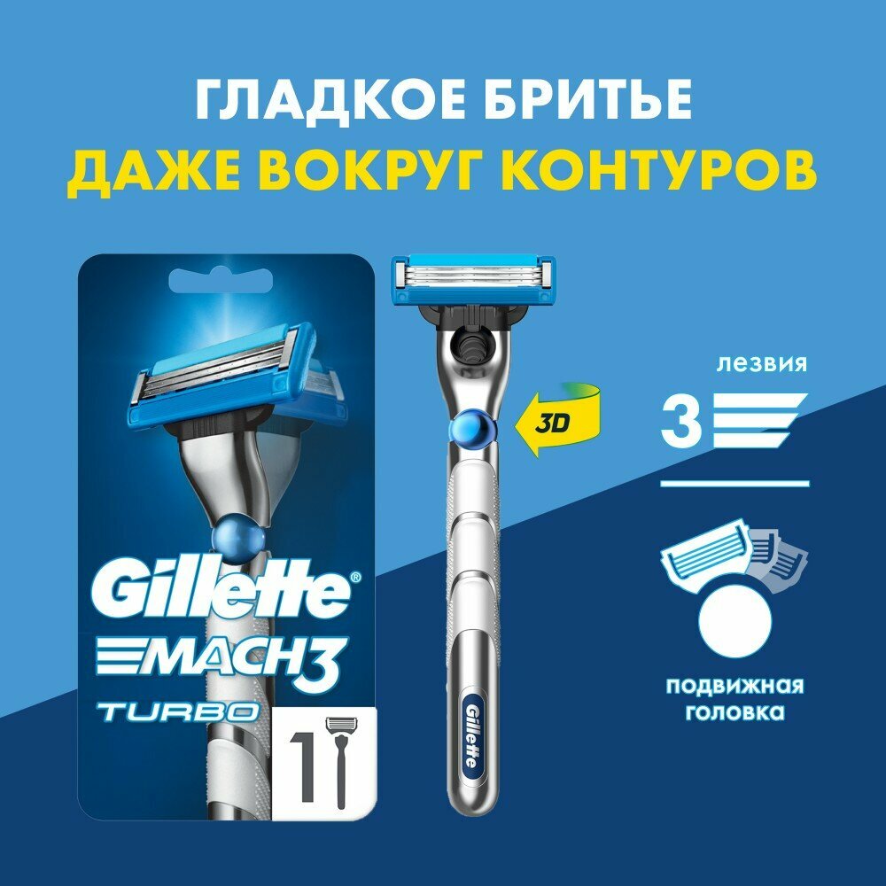 Купить Бритвенный станок Gillette MACH3 TURBO 3D с 1 сменной кассетой с доставкой по всей России. Бритвенный станок Gillette MACH3 TURBO 3D с 1 сменной кассетой: сравнение цен, характеристики, фото, актуальное наличие и цены.