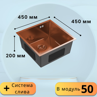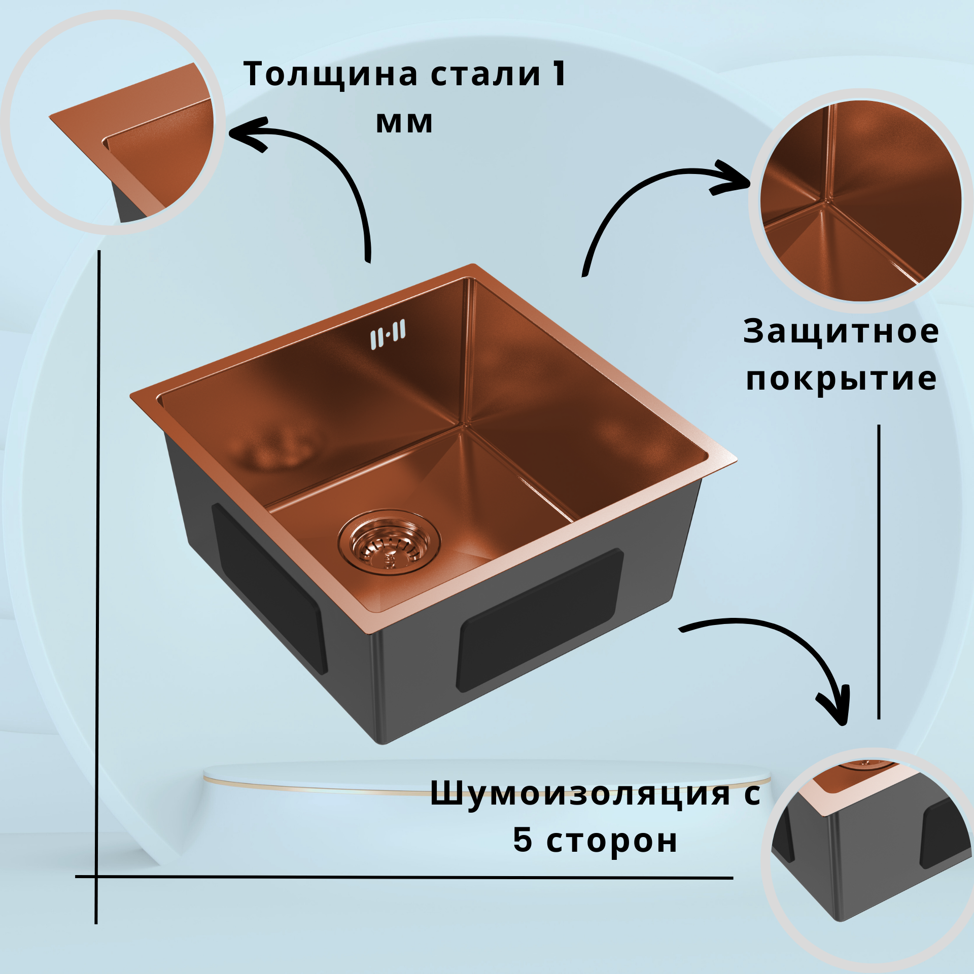 Мойка кухонная 4545 Coppery 45х45 см медь, нержавеющая сталь, квадратная, PVD покрытие: сравнение цен, характеристики, фото, актуальное наличие и цены.