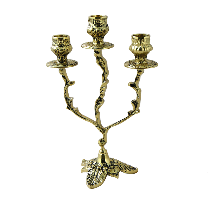 Бронзовый канделябр на 3 свечи "Рендаду" - это изысканный и стильный аксессуар для вашего дома. Изготовленный из высококачественной бронзы, он обладает золотистым цветом и глянцевой поверхностью, что придает ему роскошный и благородный вид.
