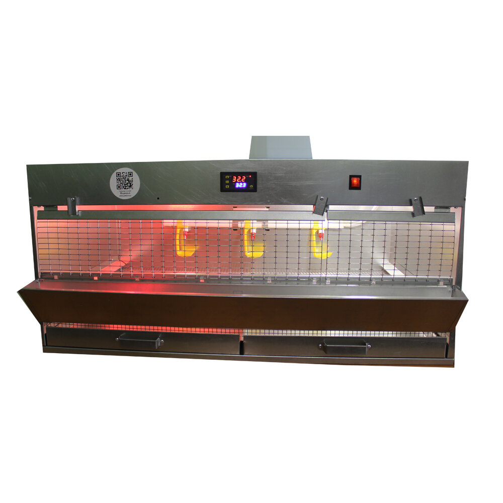 В комплект металлического брудера для утят и гусят входят: брудер с блоком обогрева и блоком освещения, новейший цифровой терморегулятор, поилка для водоплавающих на 3 ниппеля с емкостью для воды 5 л, бункерная кормушка с крышкой, поддоны для сбора помета высотой 3 см.