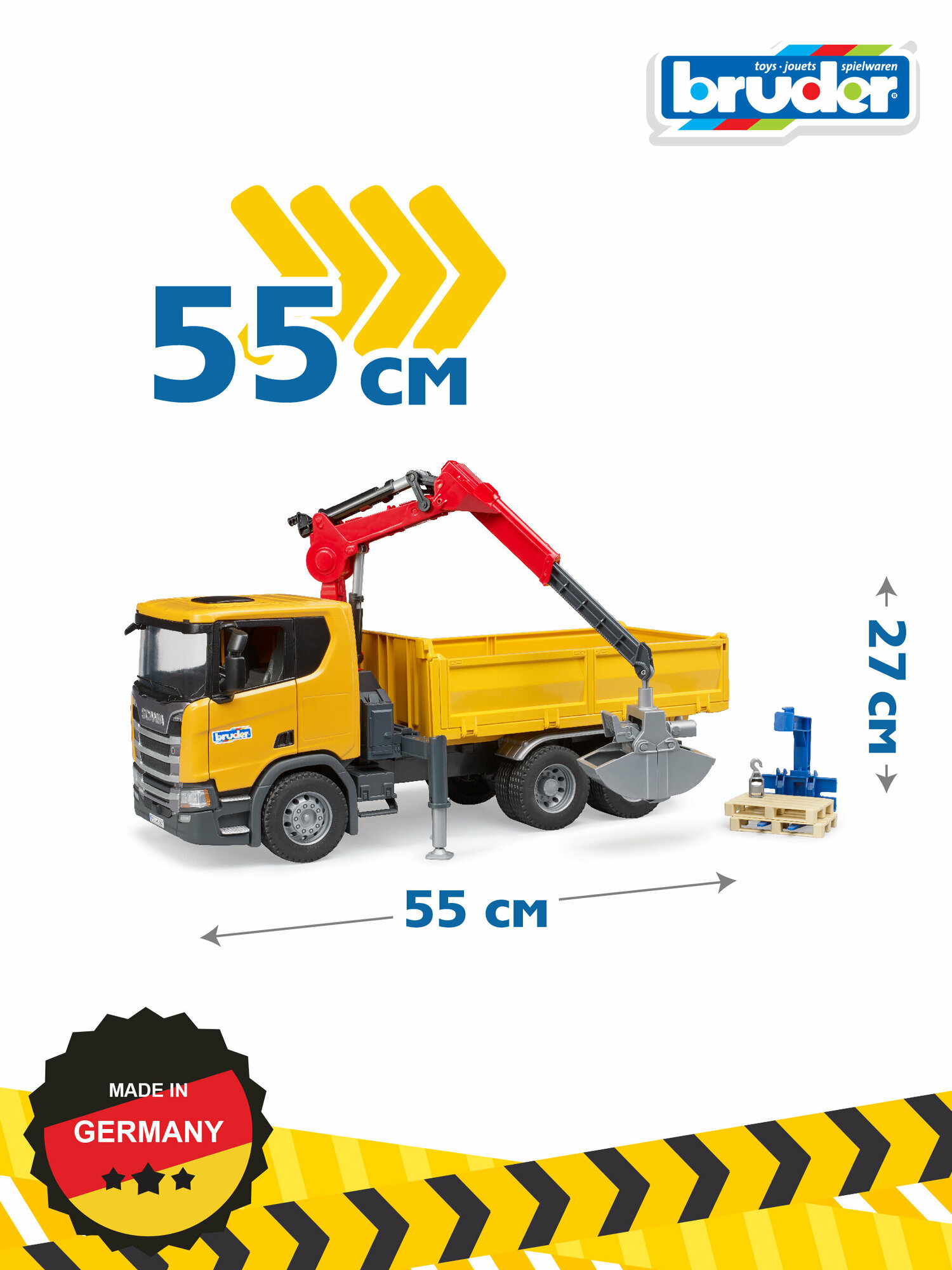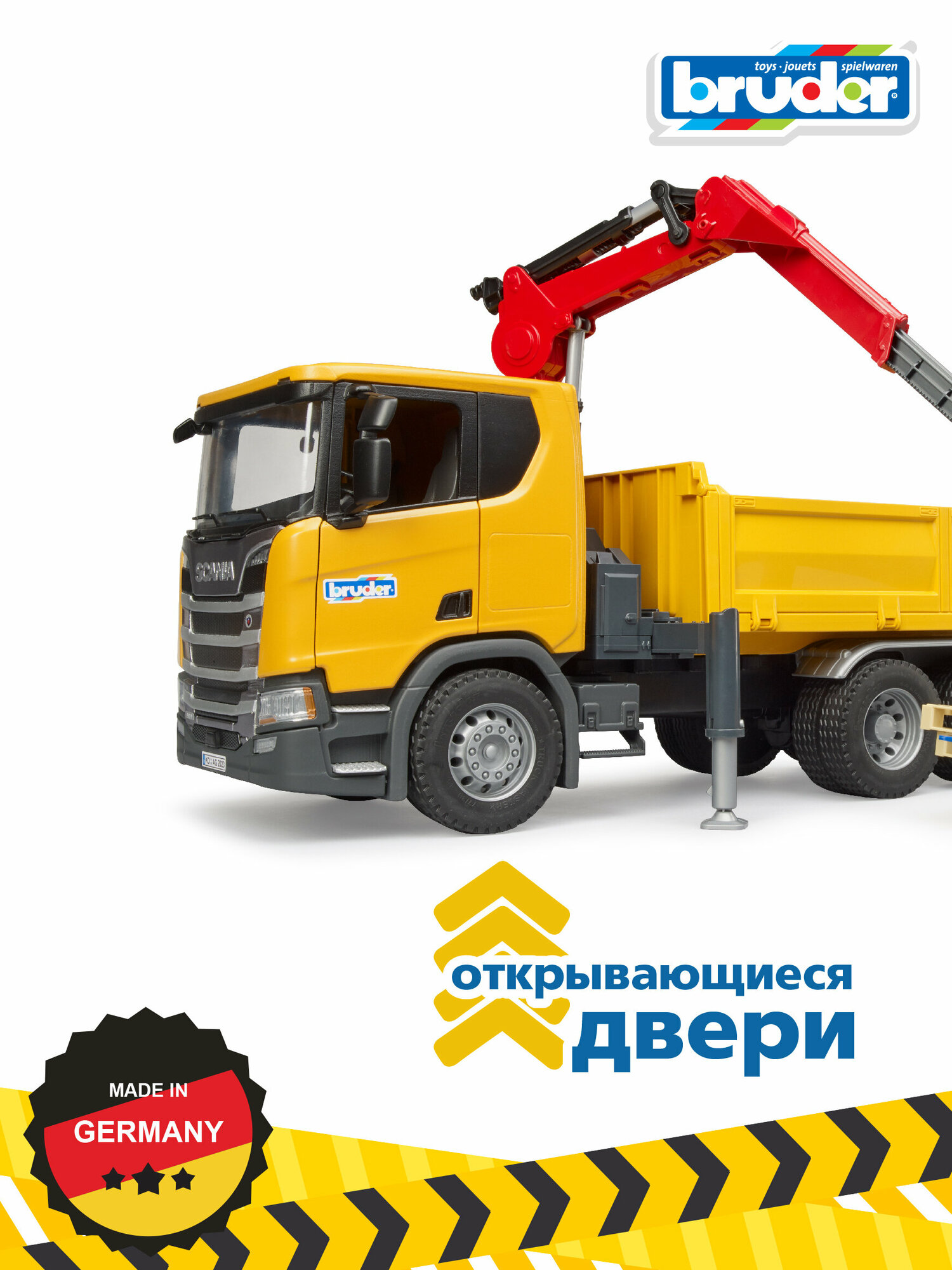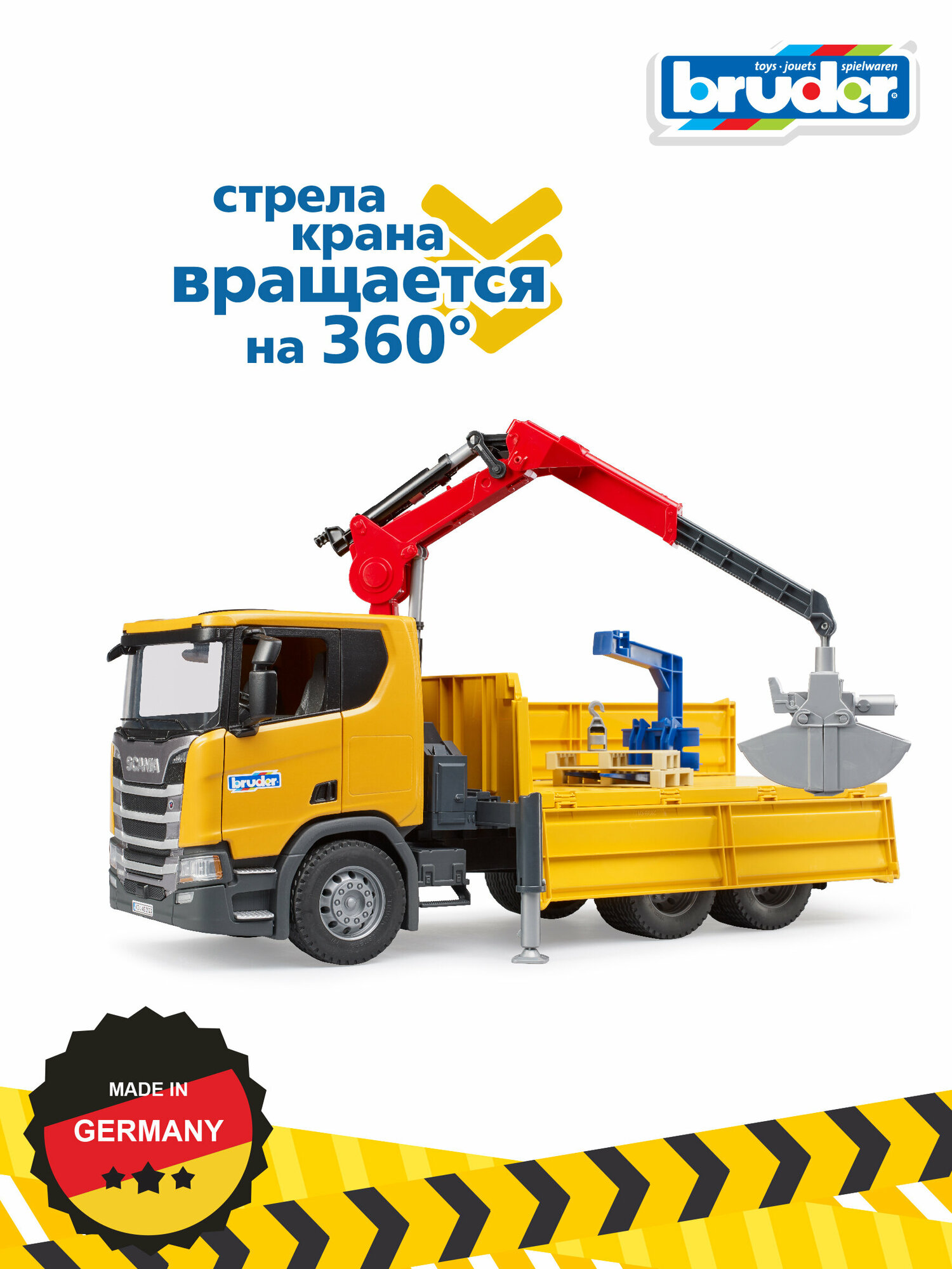 Брудер, Грузовик Scania с краном и 2 паллетами, Bruder, длина 55 см, 03-551: сравнение цен, характеристики, фото, актуальное наличие и цены.