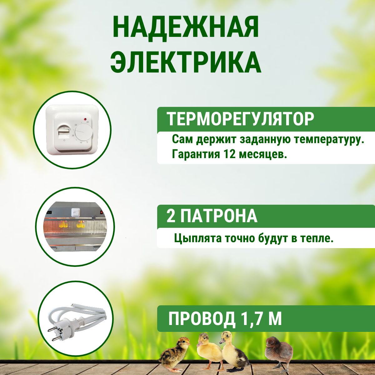 - Блок обогрева на 2 лампы - цыплятам точно будет тепло. Для обогрева можно использовать обычную лампу накаливания.