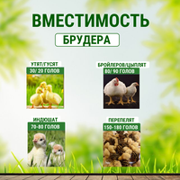 Брудер для цыплят рассчитан на обогрев и подращивание 90 суточных или 60 подросших цыплят.