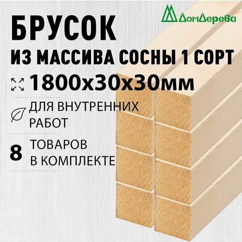 Брусок деревянный строганный 1800х30х30мм Хвоя 1 сорт 8 штук применяется для строительства и отделки. Брусок — это срез цельной древесины квадратного или прямоугольного сечения. Из брусков изготавливают: межкомнатные двери и окна, лаги несущих конструкций, обрешетки, лестницы, ограды, пристройки и малые архитектурные формы (сараи, беседки, веранды).