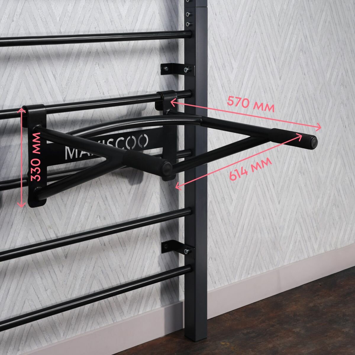 Брусья для многофункциональной шведской стенки MAXISCOO Rock позволяют мгновенно закрепить их на любом уровне и начать тренировку. Продуманная конструкция брусьев позволяет хранить их непосредственно на стенке, расположив вертикально. Чтобы подтягиваться на турнике, не обязательно снимать брусья. Это максимально удобно.