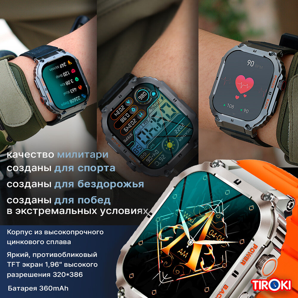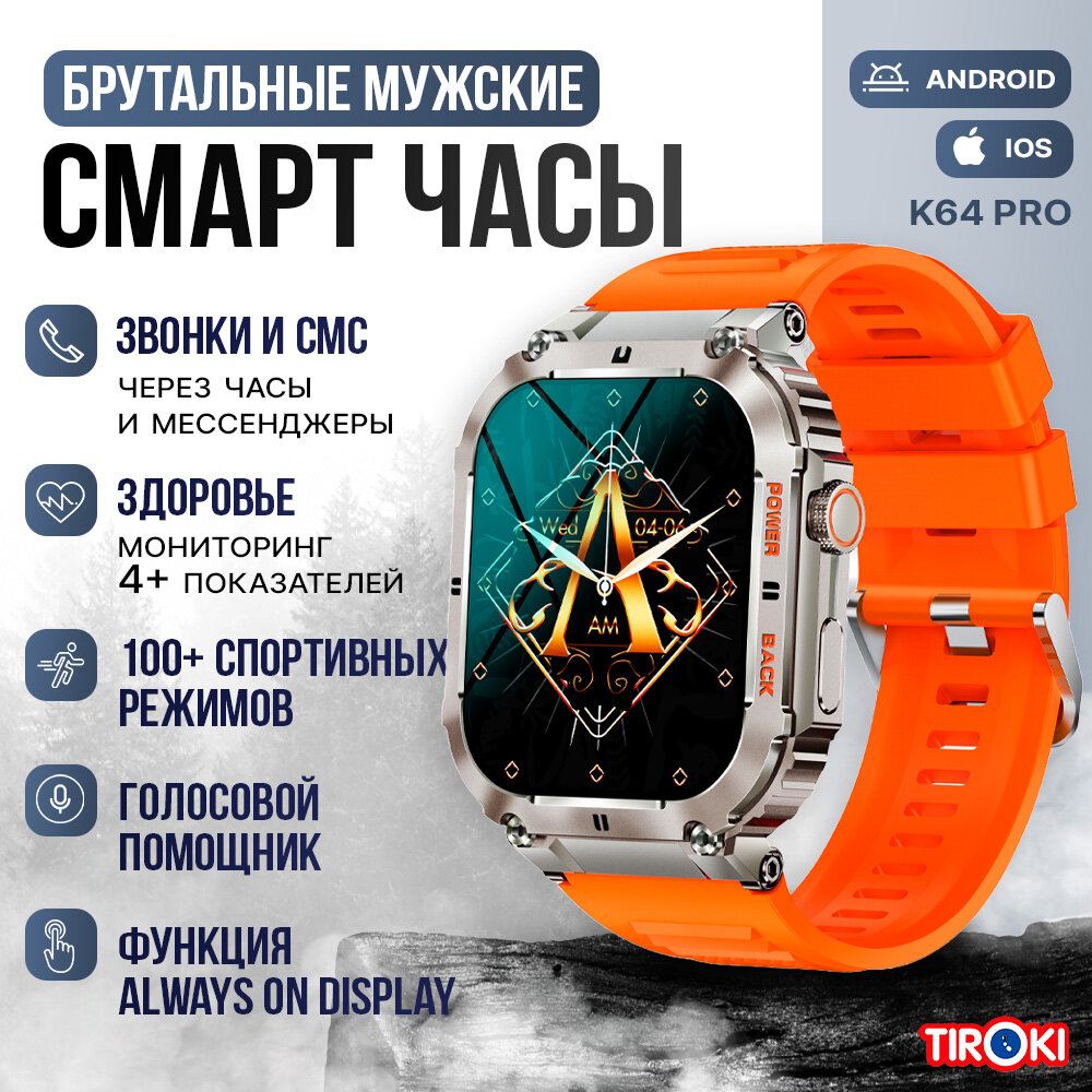 Tiroki K64 PRO- брутальные спортивные смарт часы в стиле милитари во влагозащищенном ударопрочном корпусе.