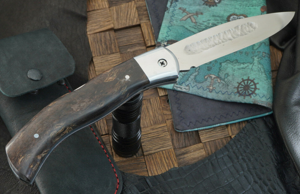 Купить Брутальный складной нож Сковородихин Северный, сталь Х12МФ, рукоять тонированная карельская береза с доставкой по всей России.