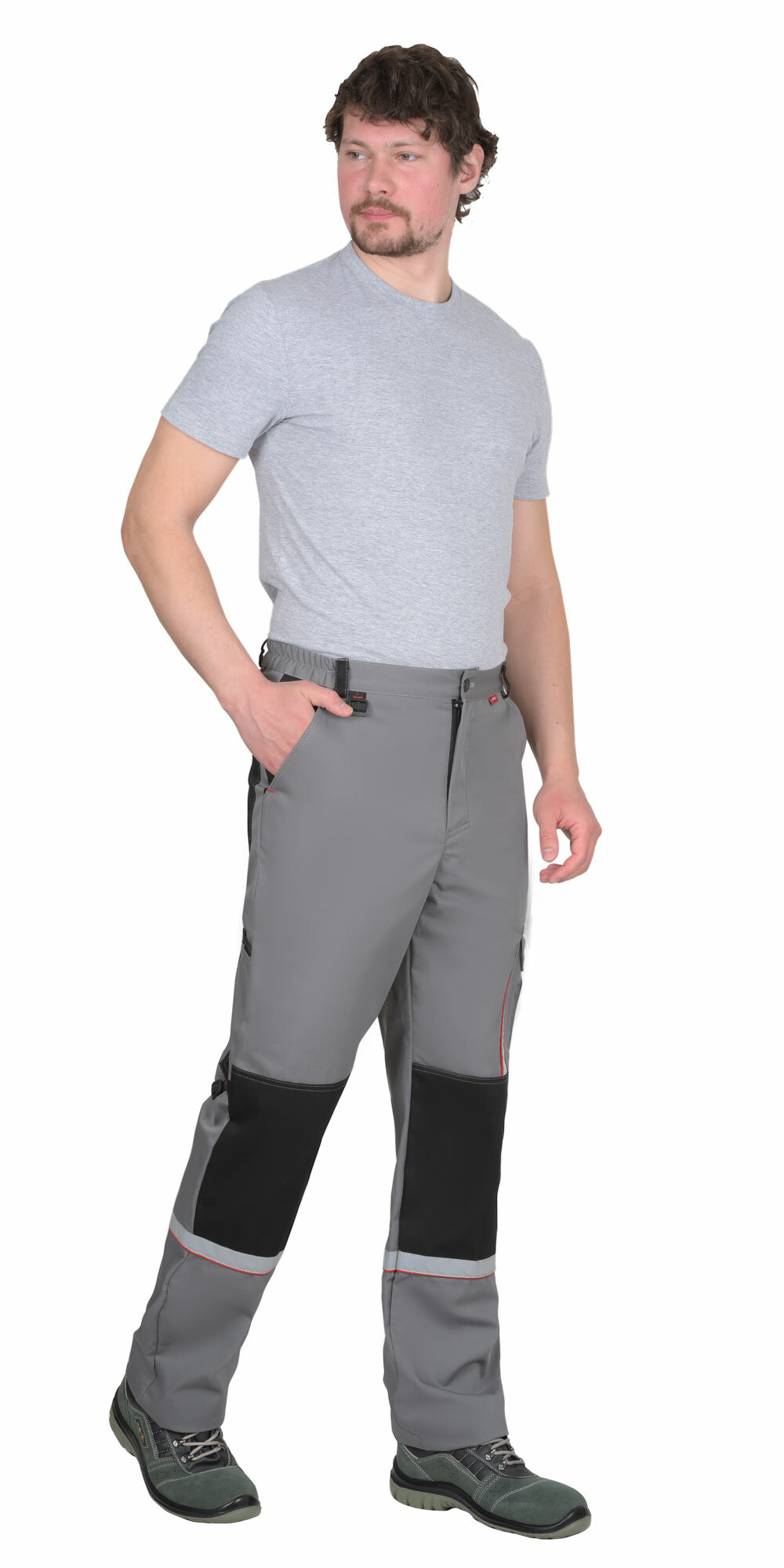 Купить Брюки «стан» средне-серые с черной и красной отделкой р. 52-54/170-176 / Брюки рабочие мужские / Брюки рабочие с доставкой по всей России.